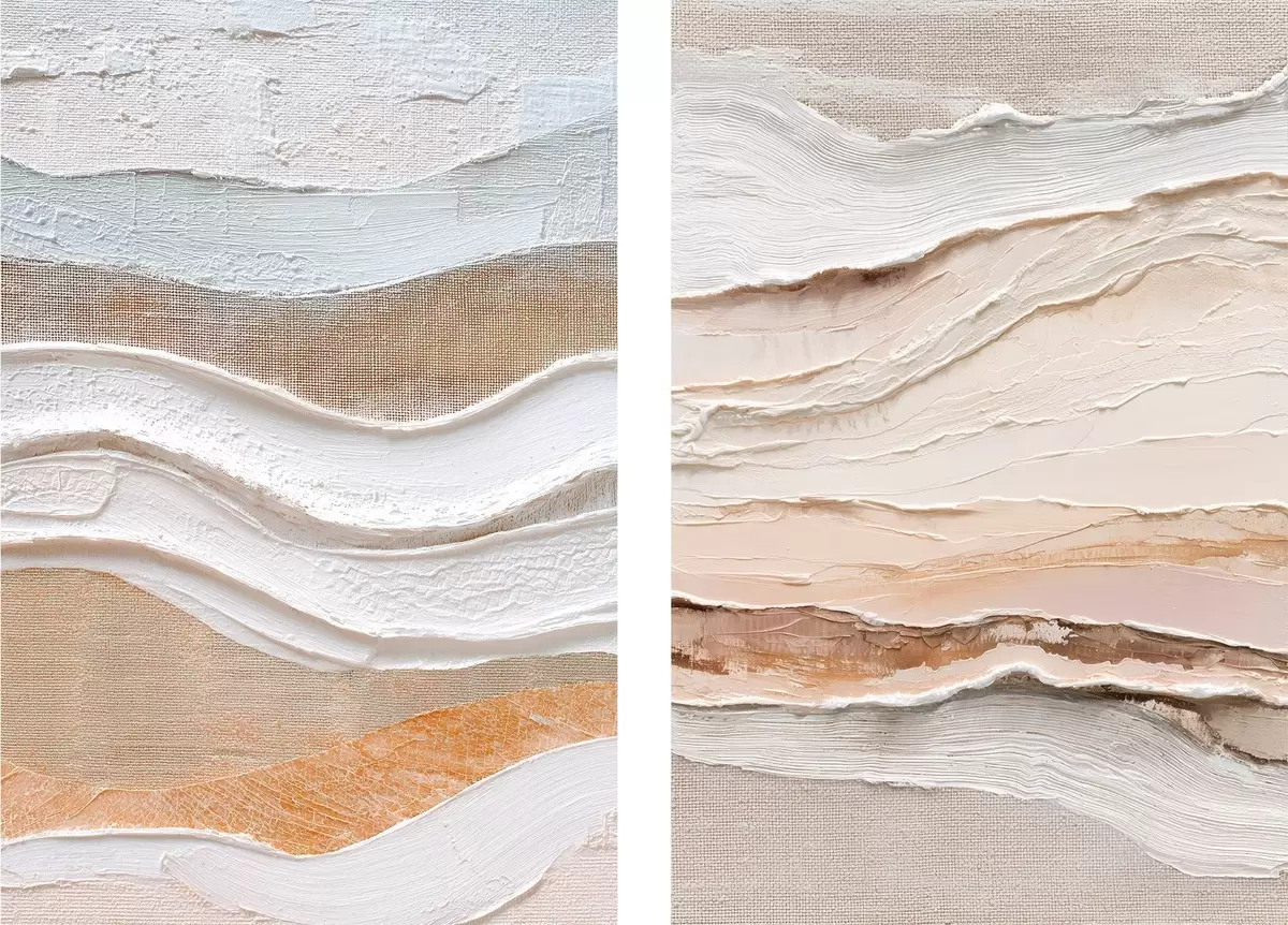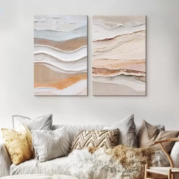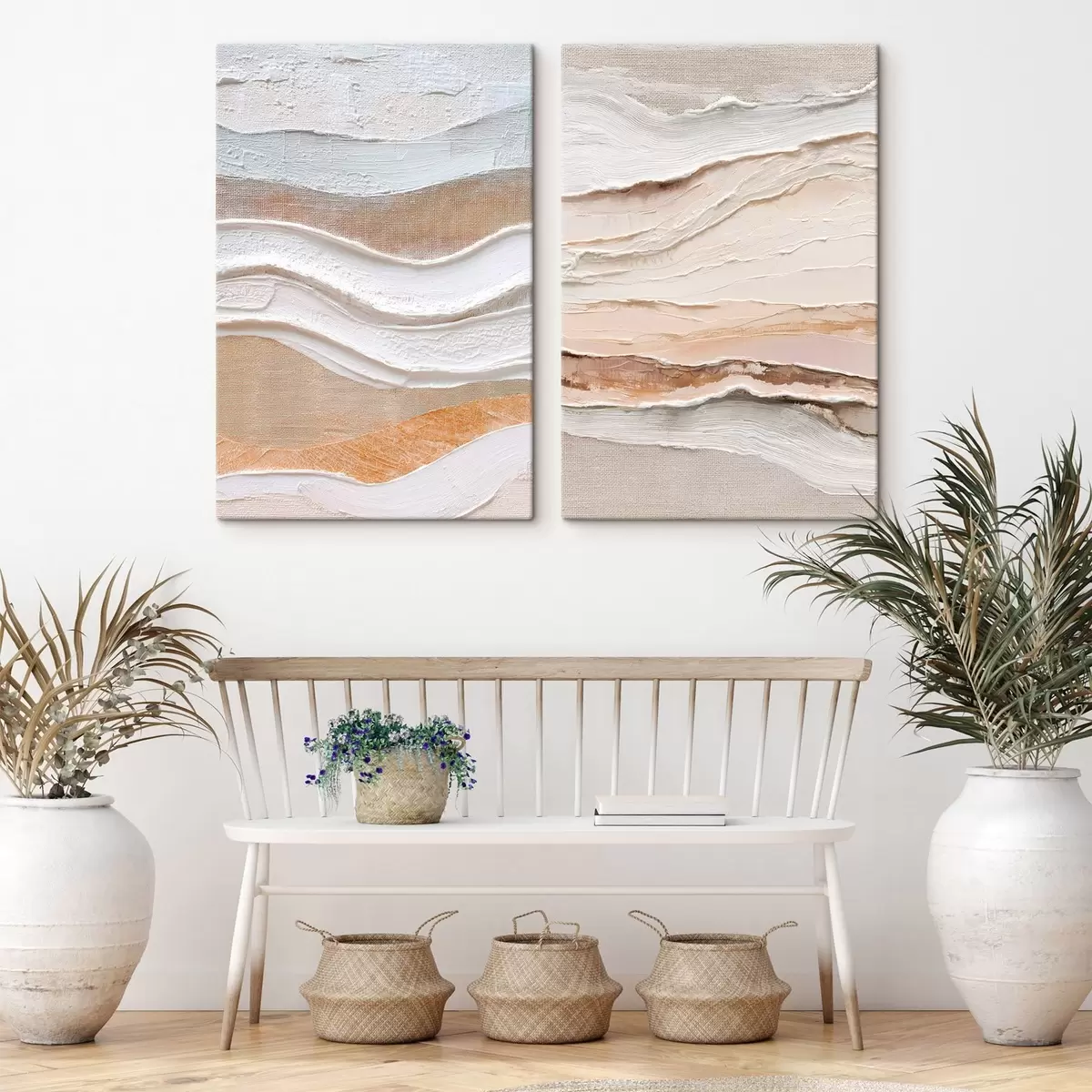 Tableau Diptyque minimaliste avec des vagues texturées sur fond de lin m30031