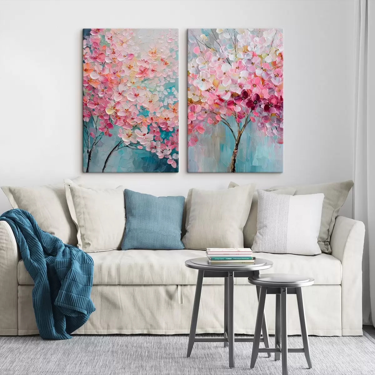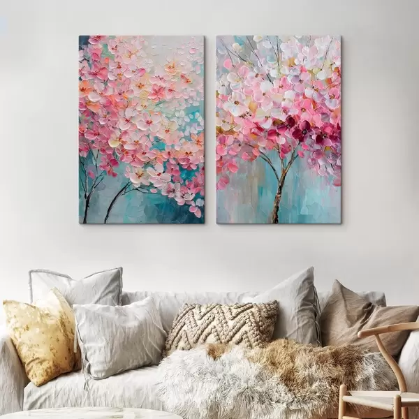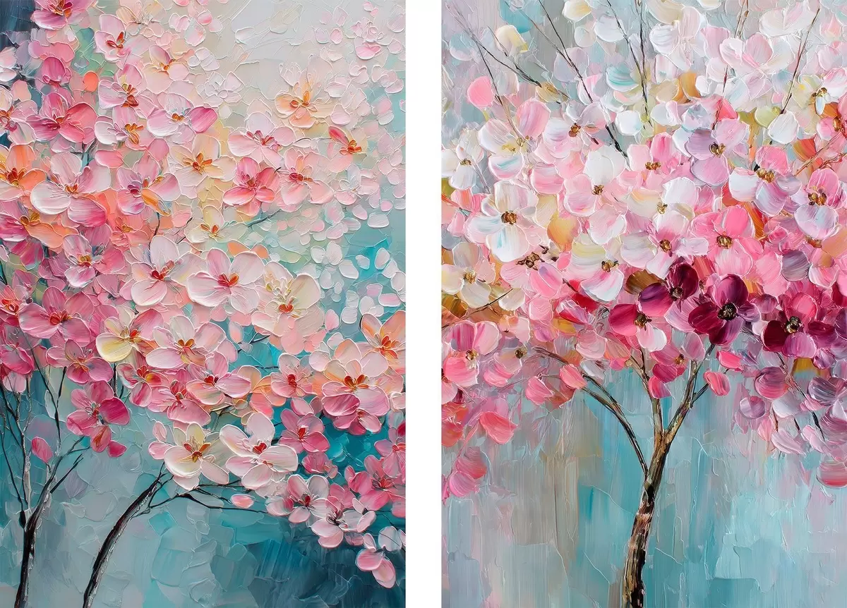 Tableau Arbre en fleurs roses dans un style peinture à l'huile m30040