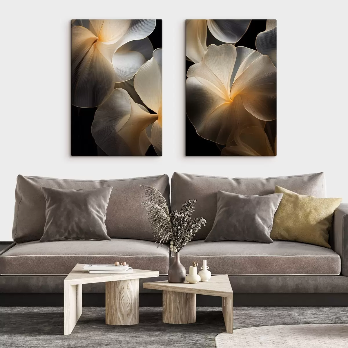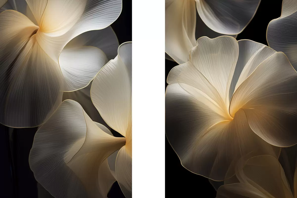 Tableau Pétales abstraits translucides aux lignes délicates, sur fond sombre m30050