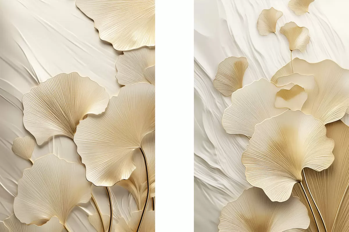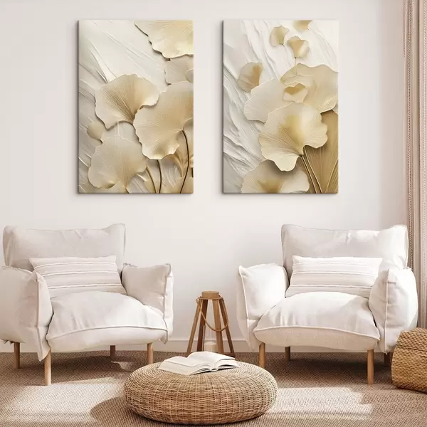 Tableau Feuilles de ginkgo abstraites sur fond clair texturé, composition élégante et abstraite m30054