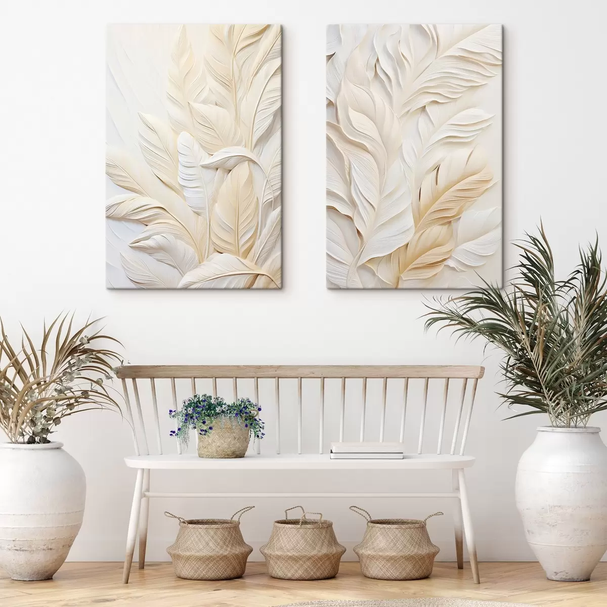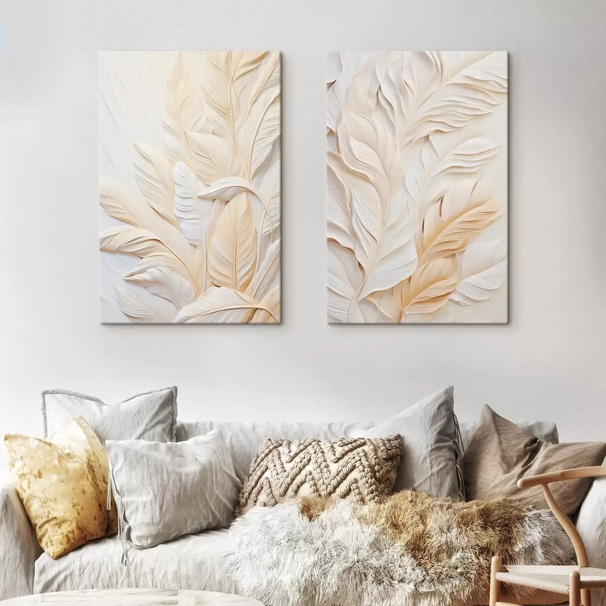 Tableau Plumes de couleur crème se chevauchant, sur un fond clair et doux. m30062