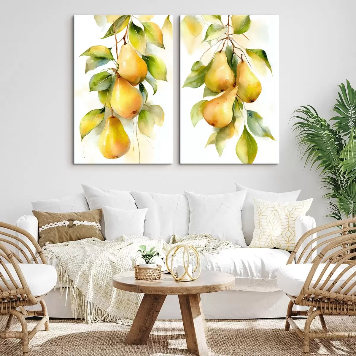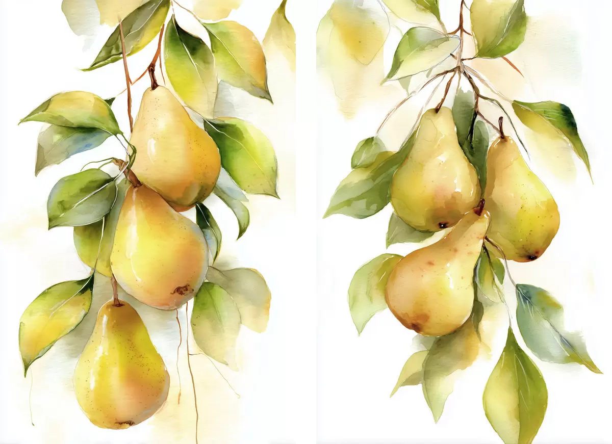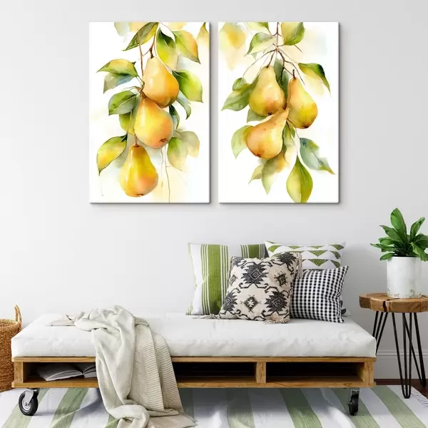 Tableau poires jaunes juteuses peintes à l'aquarelle Nr m30088