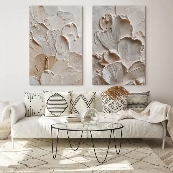Trois types de matériaux peuvent être commandés : Economic Canvas - matériau dense et durable pour l'impression numérique, identique à la toile de peintre, surface imperméable, reproduction réaliste des détails, matériau à grain moyen. Premium Canvas - la texture ressemble à celle d'une toile de peintre (petits fils entrelacés). Reproduction douce et détaillée de l'image sur une surface mate. Eco-Premium - tissu 100 % coton de haute qualité. Grâce aux fibres naturelles de coton, le matériau est durable et résistant à l'usure. Excellente reproduction des couleurs et des détails.
