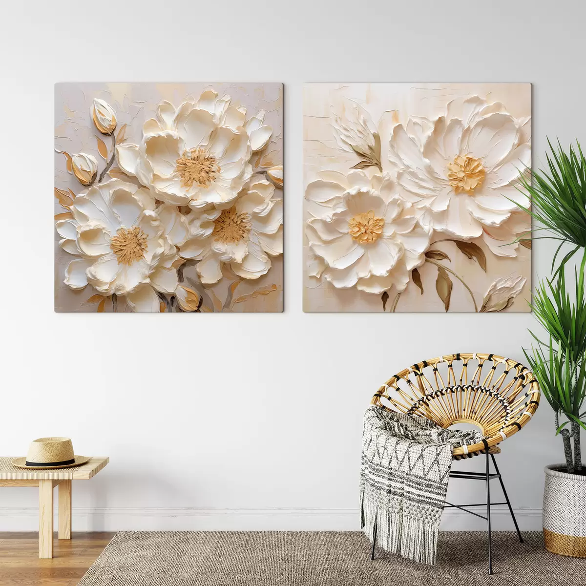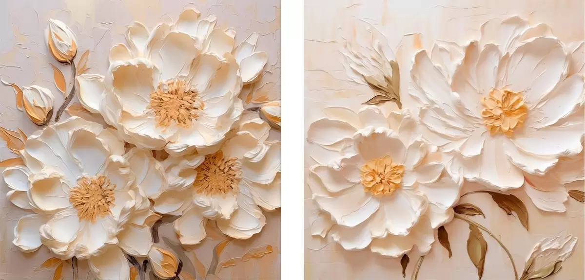 Trois types de matériaux peuvent être commandés : Economic Canvas - matériau dense et durable pour l'impression numérique, identique à la toile de peintre, surface imperméable, reproduction réaliste des détails, matériau à grain moyen. Premium Canvas - la texture ressemble à celle d'une toile de peintre (petits fils entrelacés). Reproduction douce et détaillée de l'image sur une surface mate. Eco-Premium - tissu 100 % coton de haute qualité. Grâce aux fibres naturelles de coton, le matériau est durable et résistant à l'usure. Excellente reproduction des couleurs et des détails.