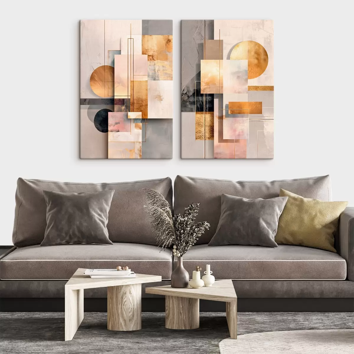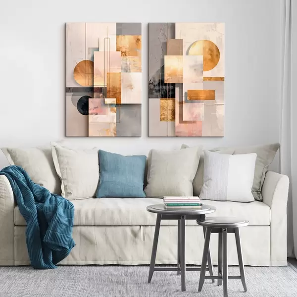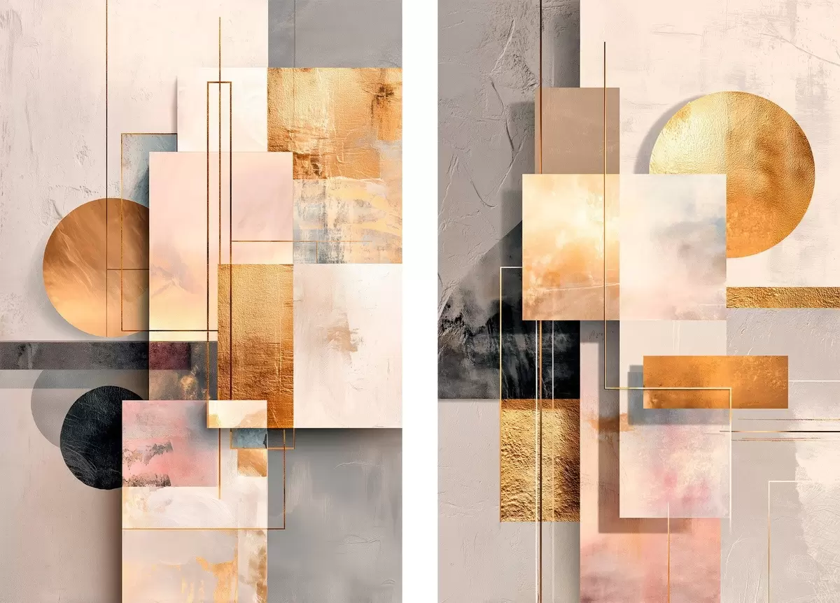 Tableau Abstraction géométrique rehaussée de touches de cuivre et de beige, dans un style graphique moderne m30138
