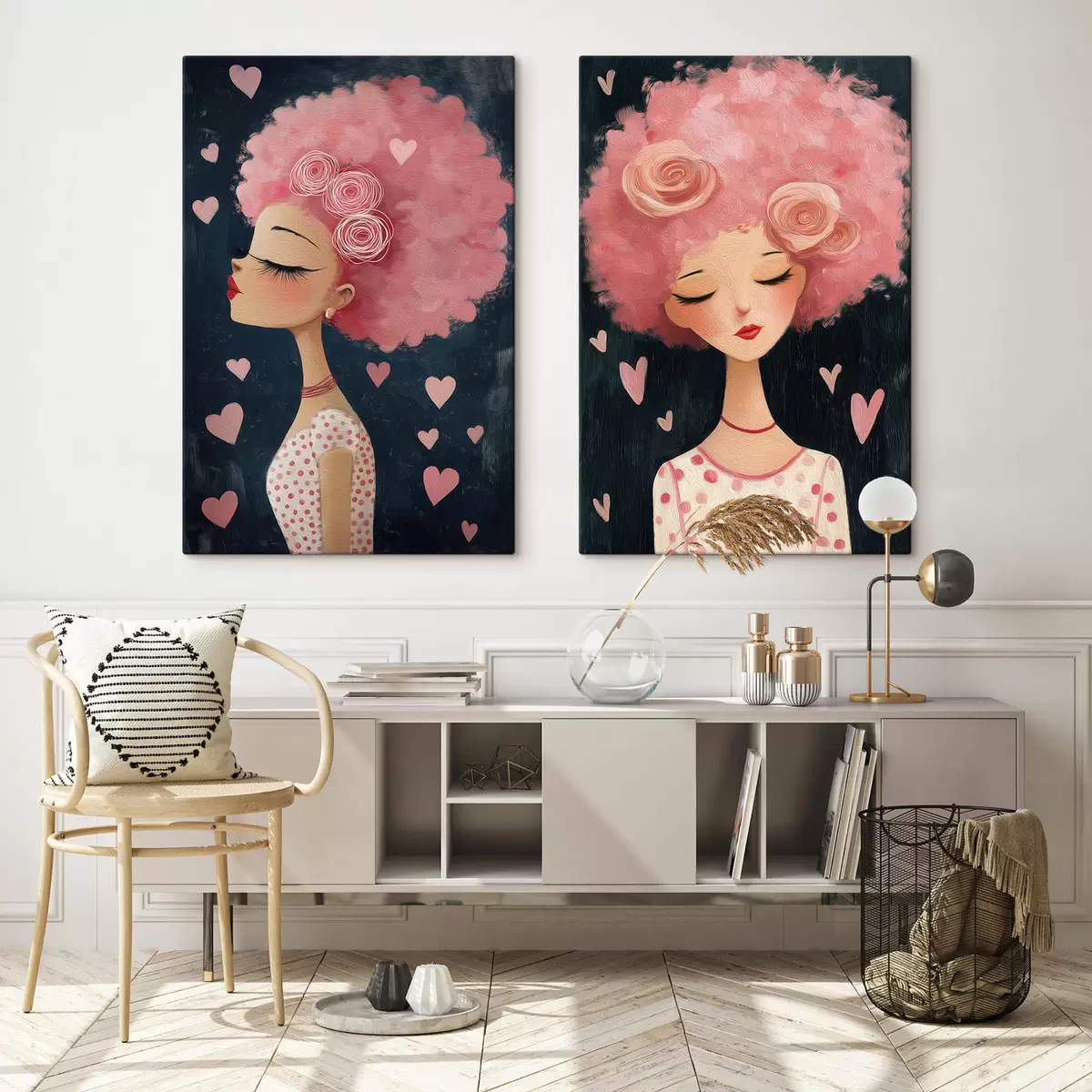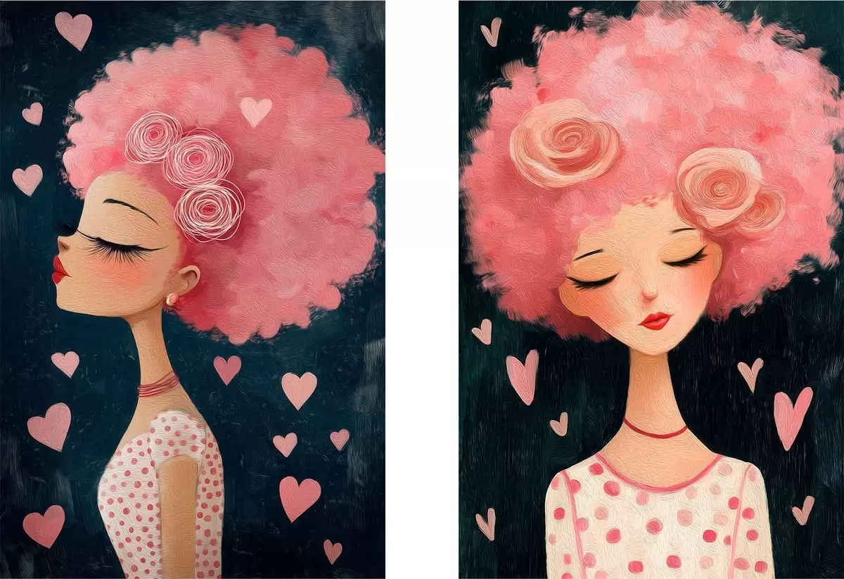 Tableau Fille aux cheveux roses et aux cœurs Nr m30156