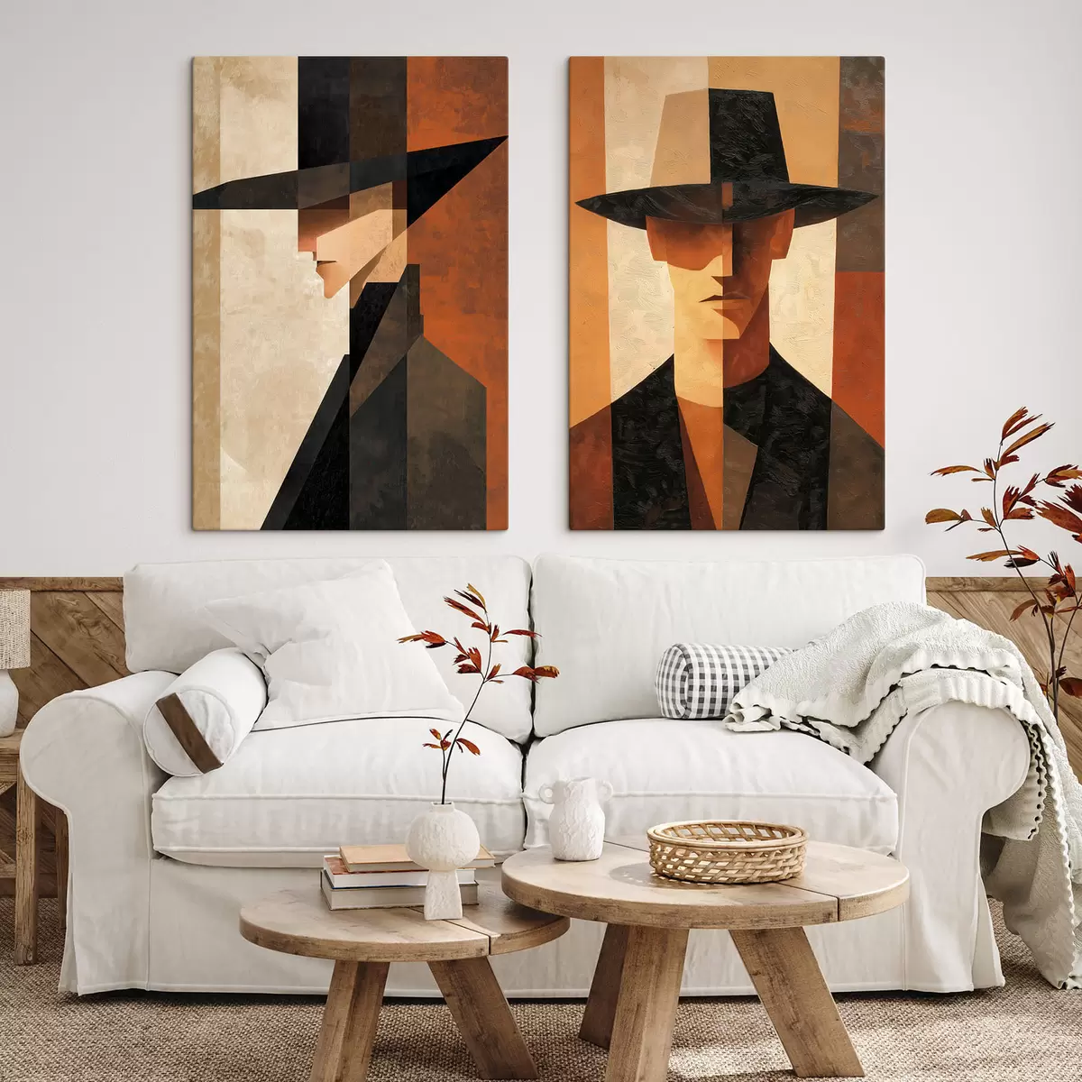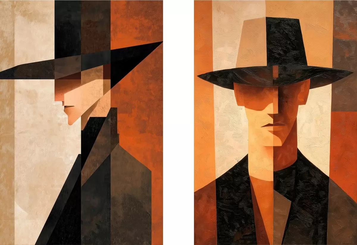 Tableau Portrait géométrique d'un homme coiffé d'un chapeau Nr m30157