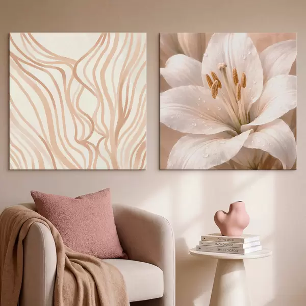 Tableau Diptyque représentant des fleurs et des formes abstraites Nr m30236
