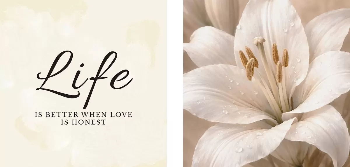Tableau Diptyque avec le texte « Life » et un gros plan sur une fleur blanche m30237