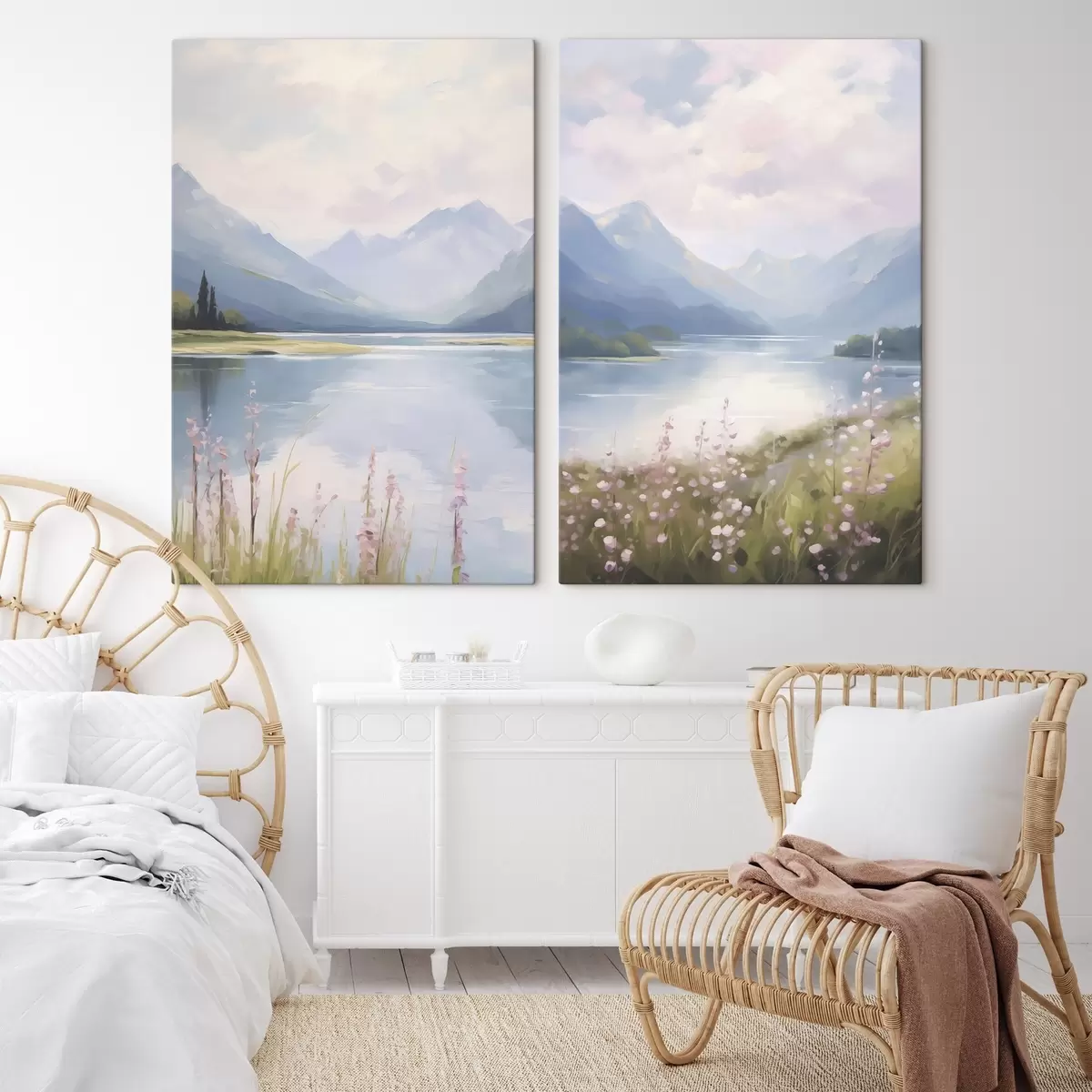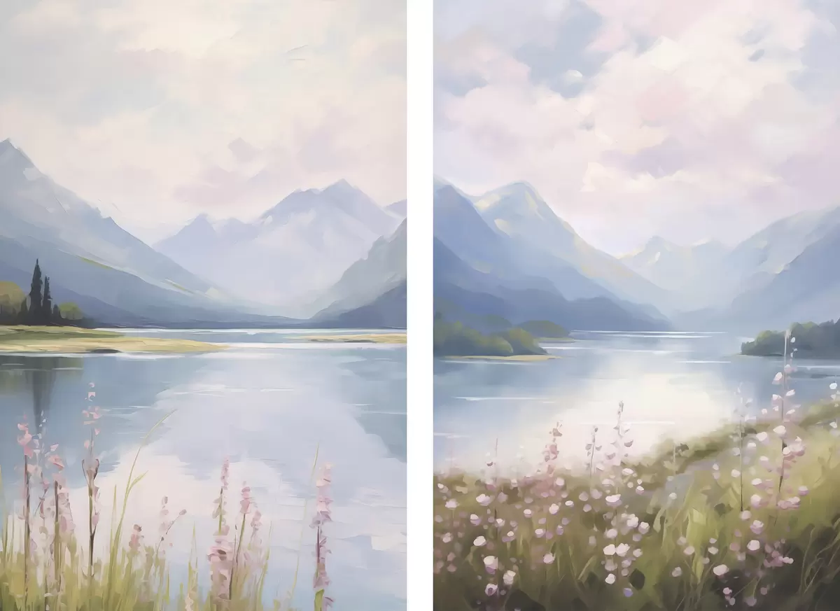 Tableau Lac près des montagnes imitation de peinture m30248