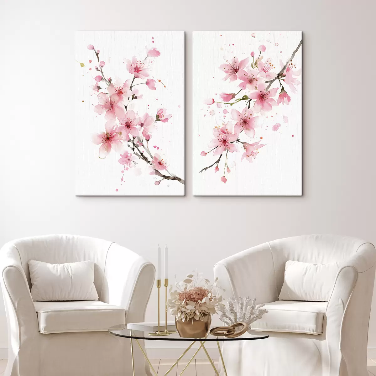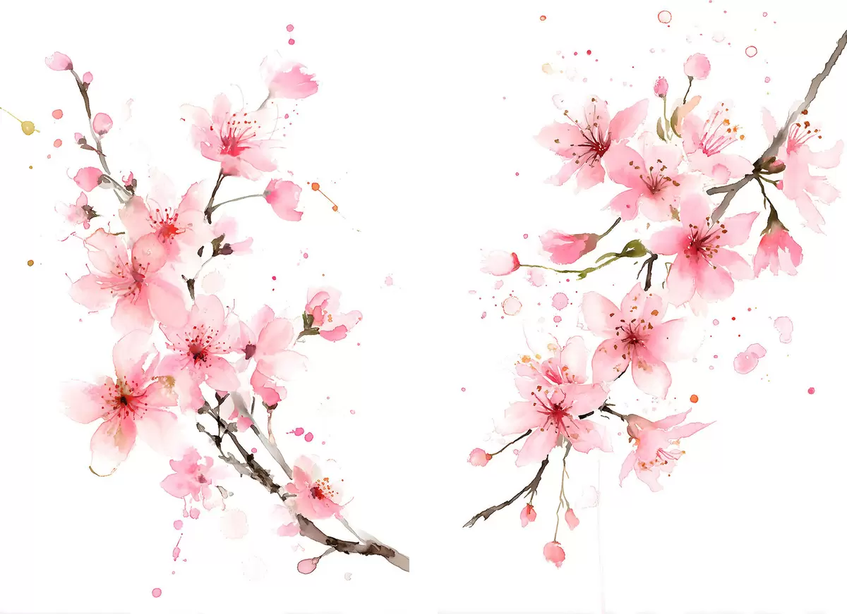 Tableau des branches d'abricotier en fleurs, dans un style aquarelle Nr m30257