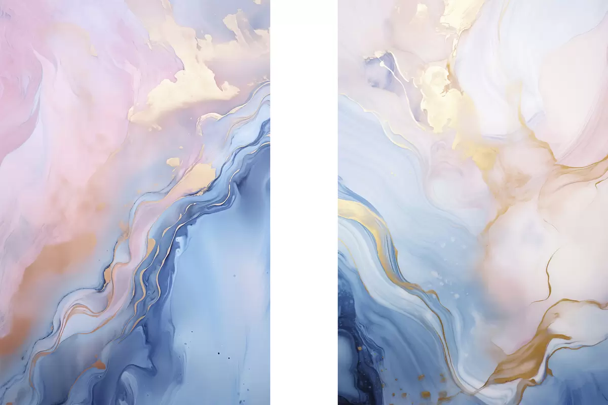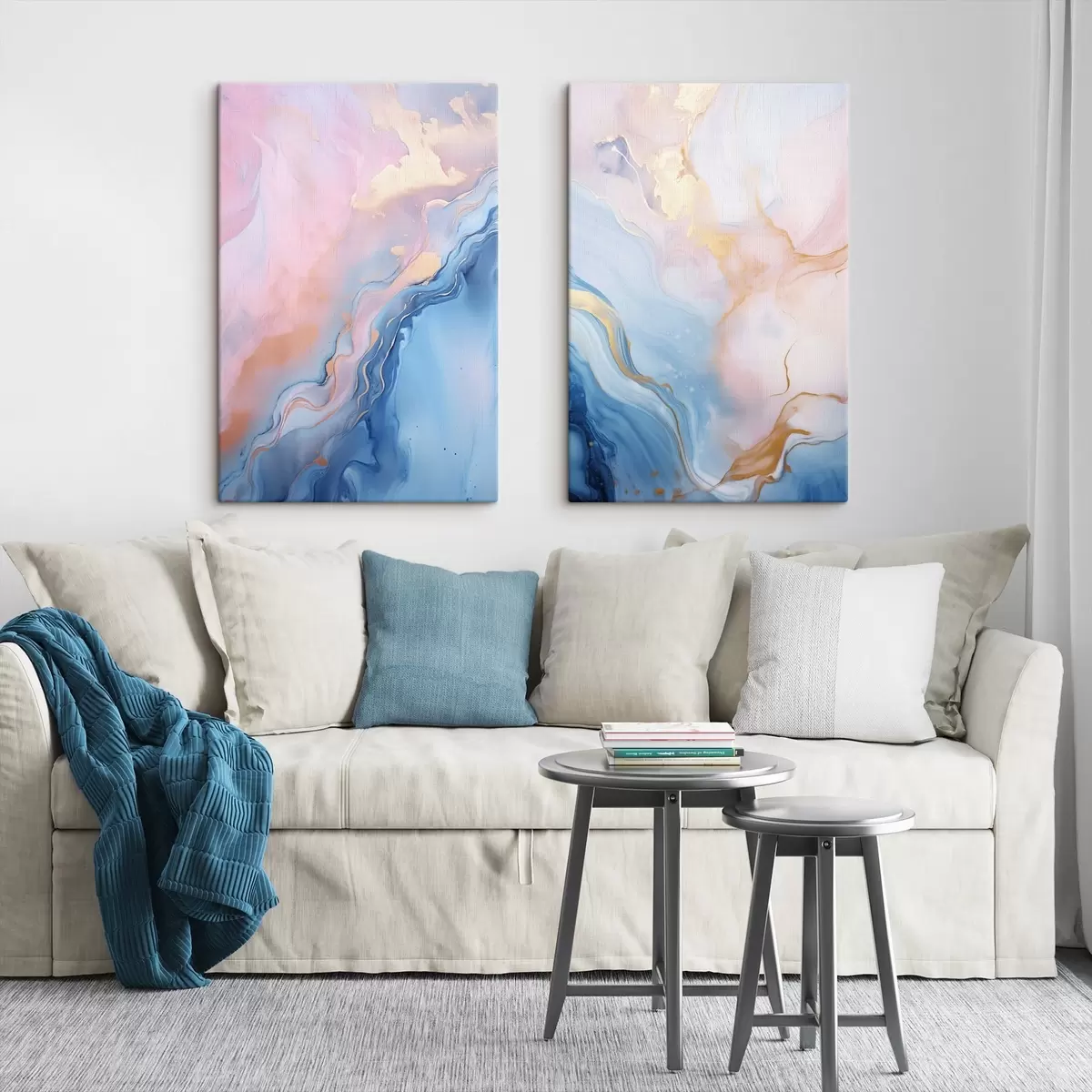 Tableau Œuvre d'art fluide abstraite aux textures variées, avec des motifs tourbillonnants dans des tons roses et bleus m30315