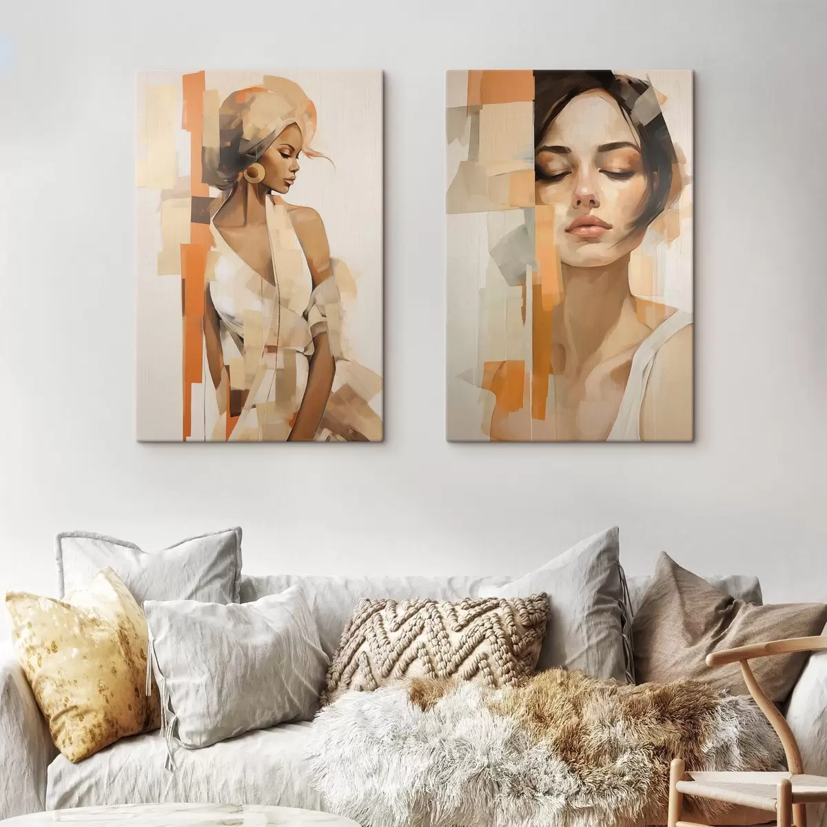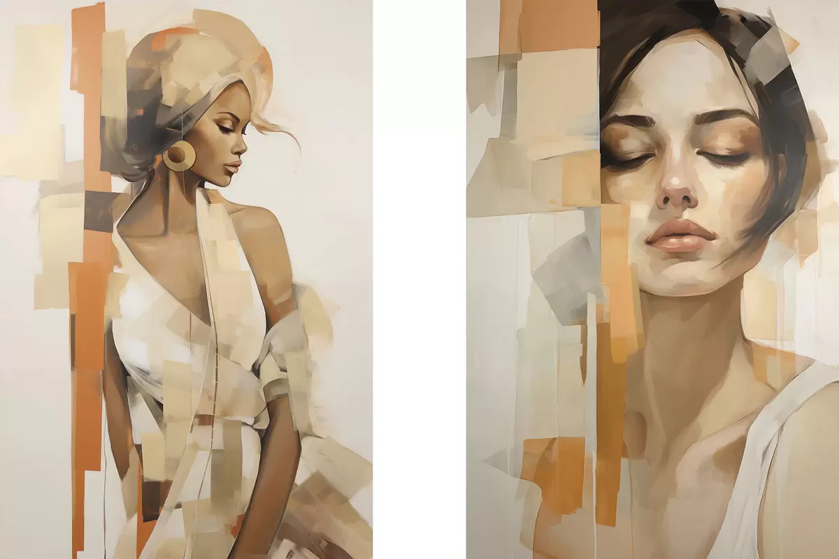 Tableau Portrait abstrait d'une femme avec des formes orange et beiges m30318