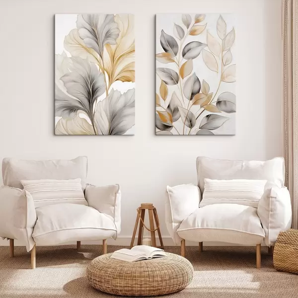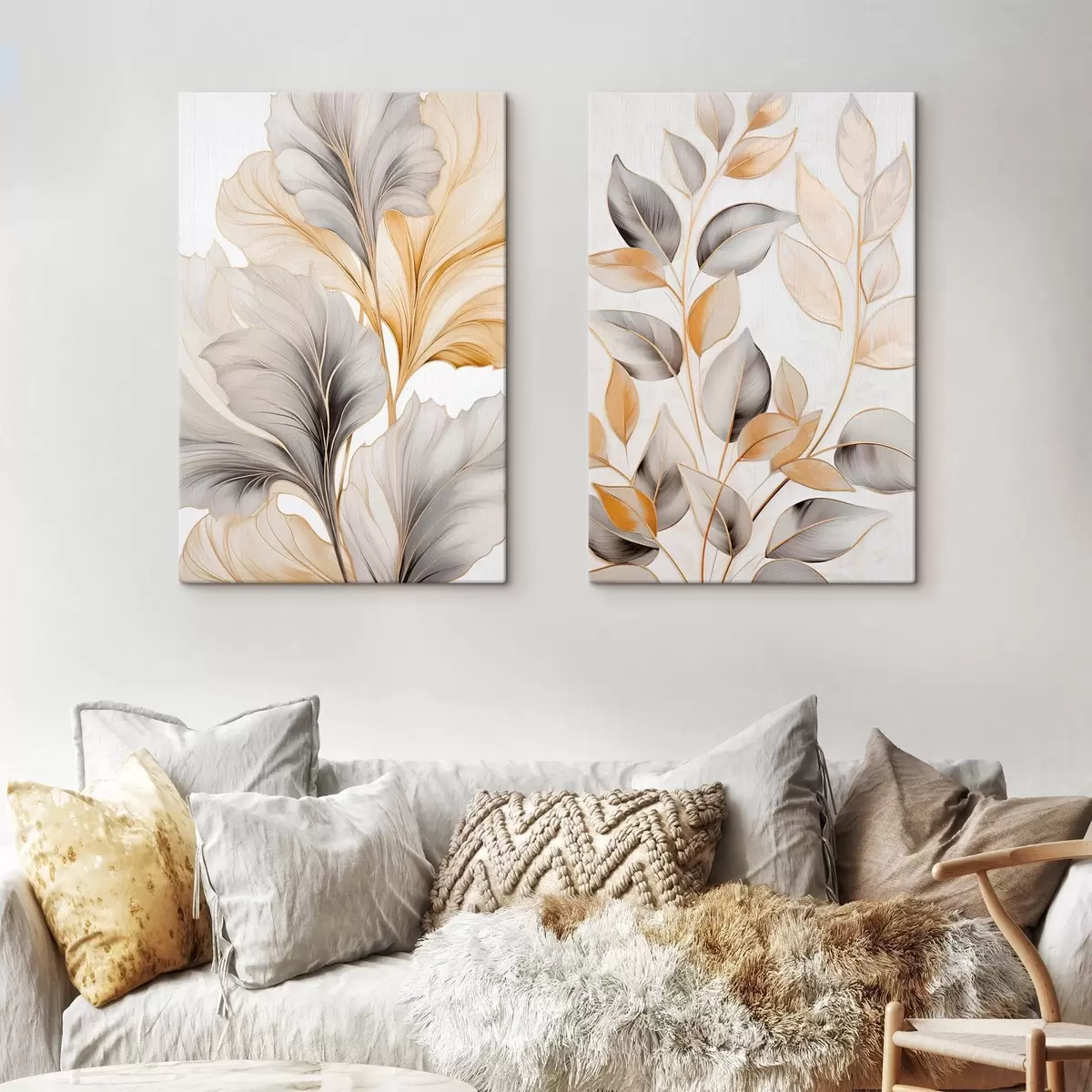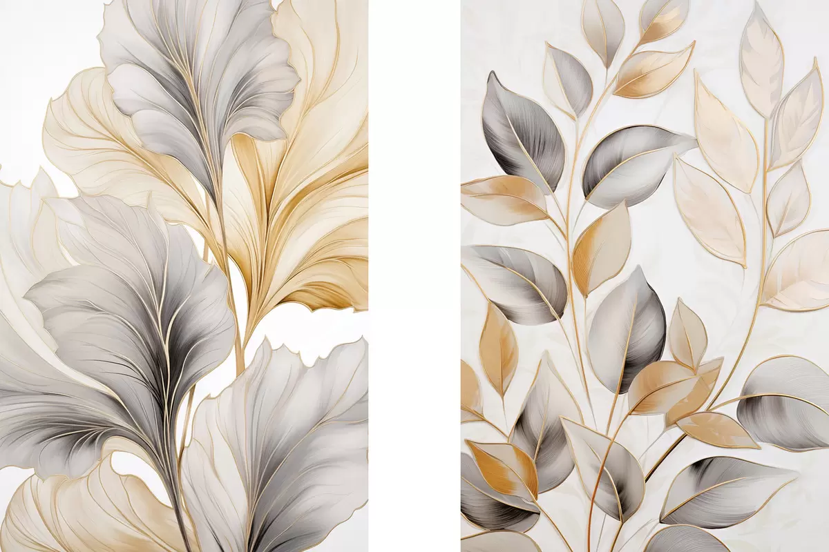 Tableau De grandes feuilles translucides dans des tons de gris et de jaune m30323