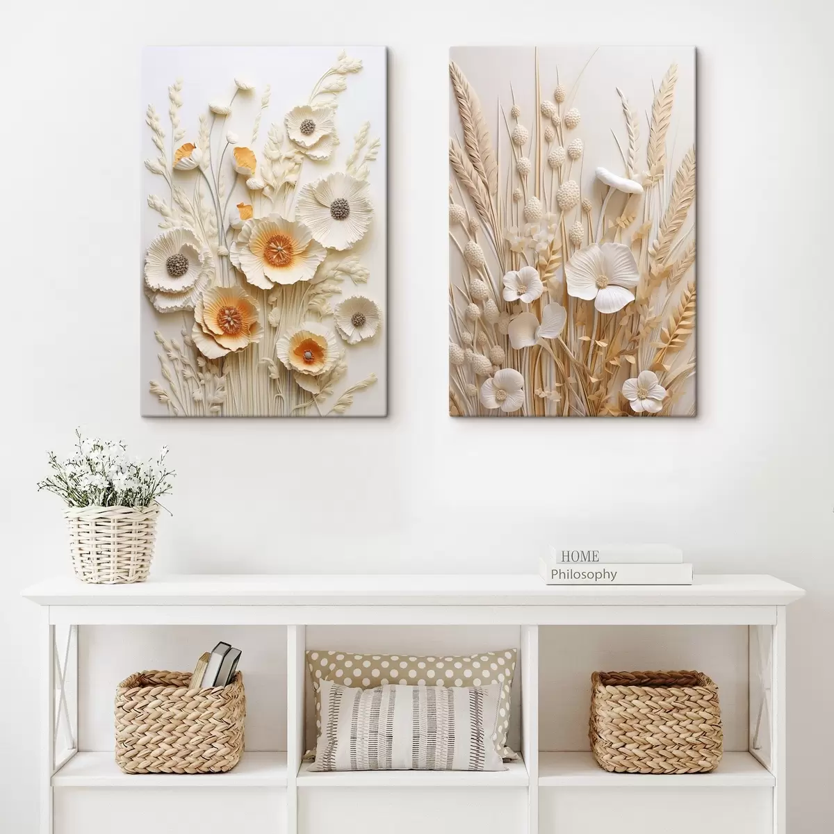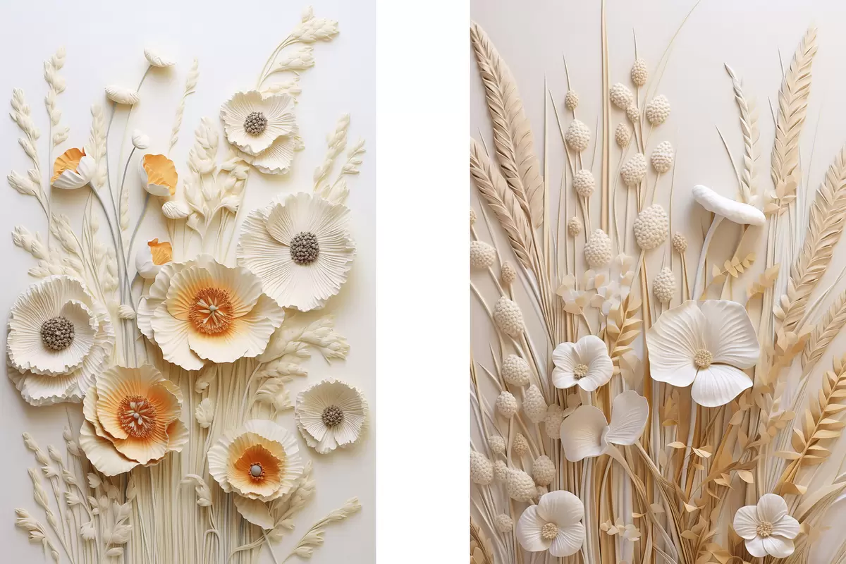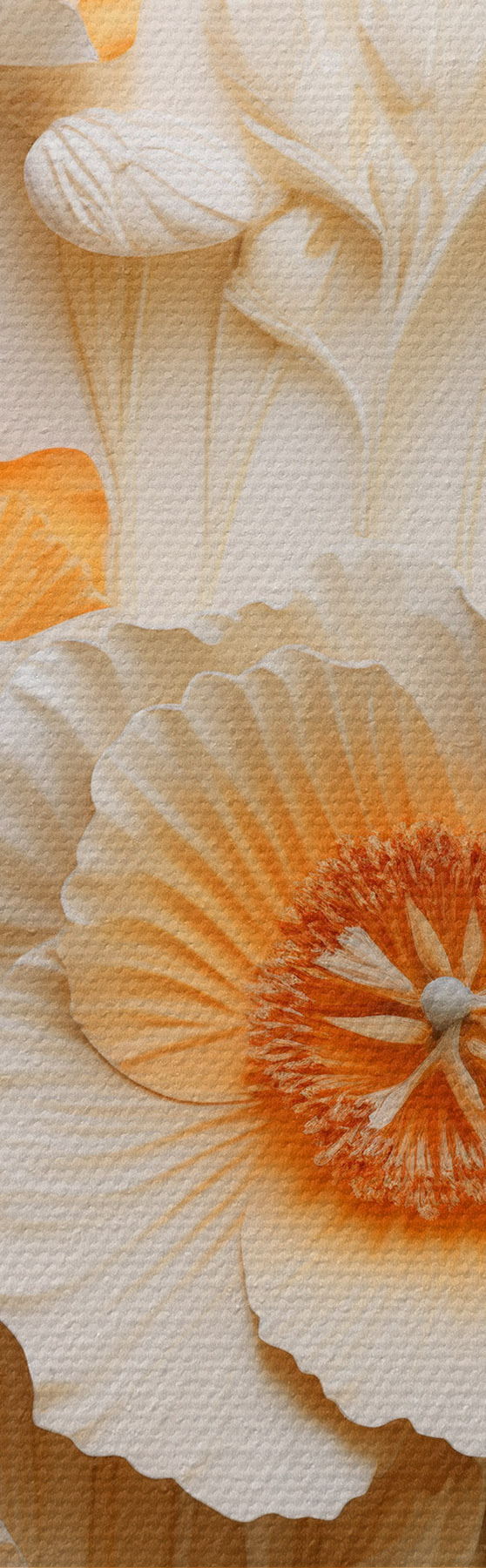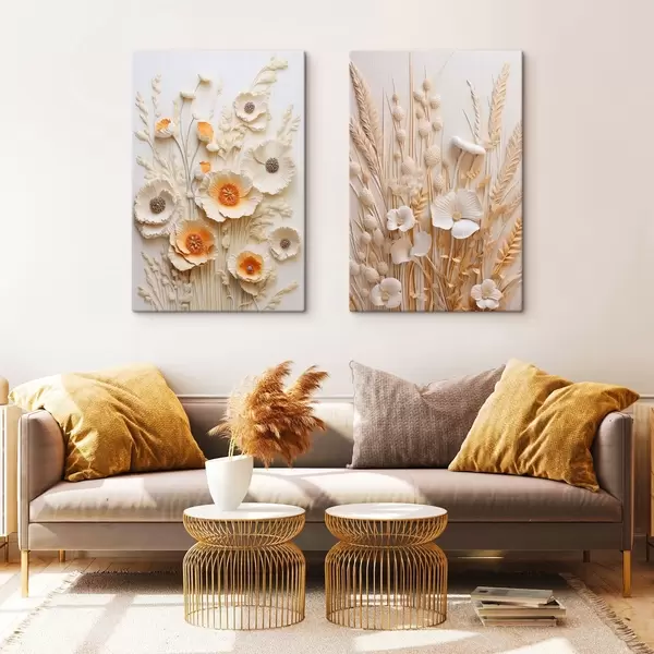 Tableau Un bouquet de coquelicots crème et orange agrémenté de tiges de blé séchées Nr m30324
