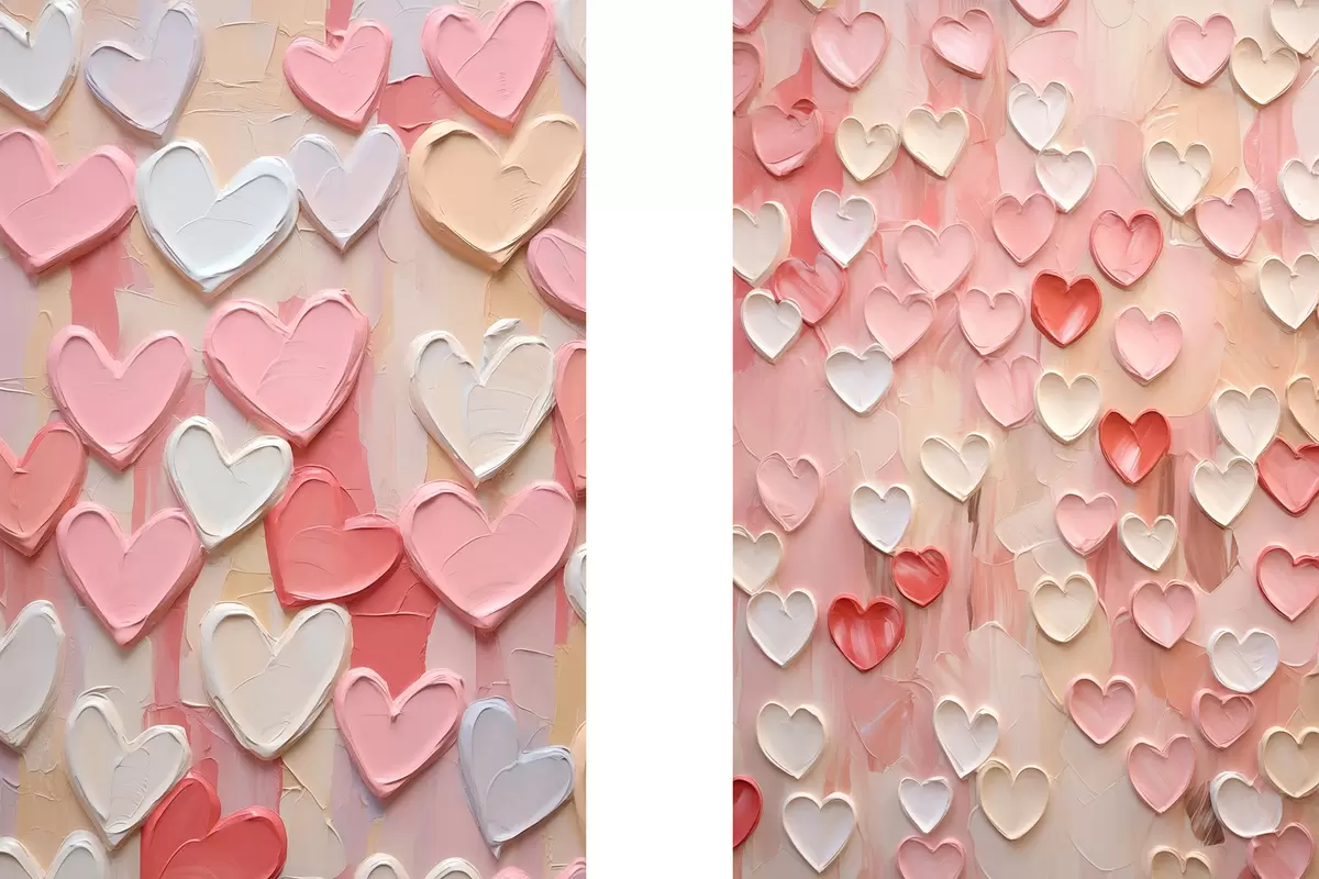 Tableau Des cœurs dans différentes nuances de pêche et de rose, réalisés dans un style texturé et peint Nr m30326
