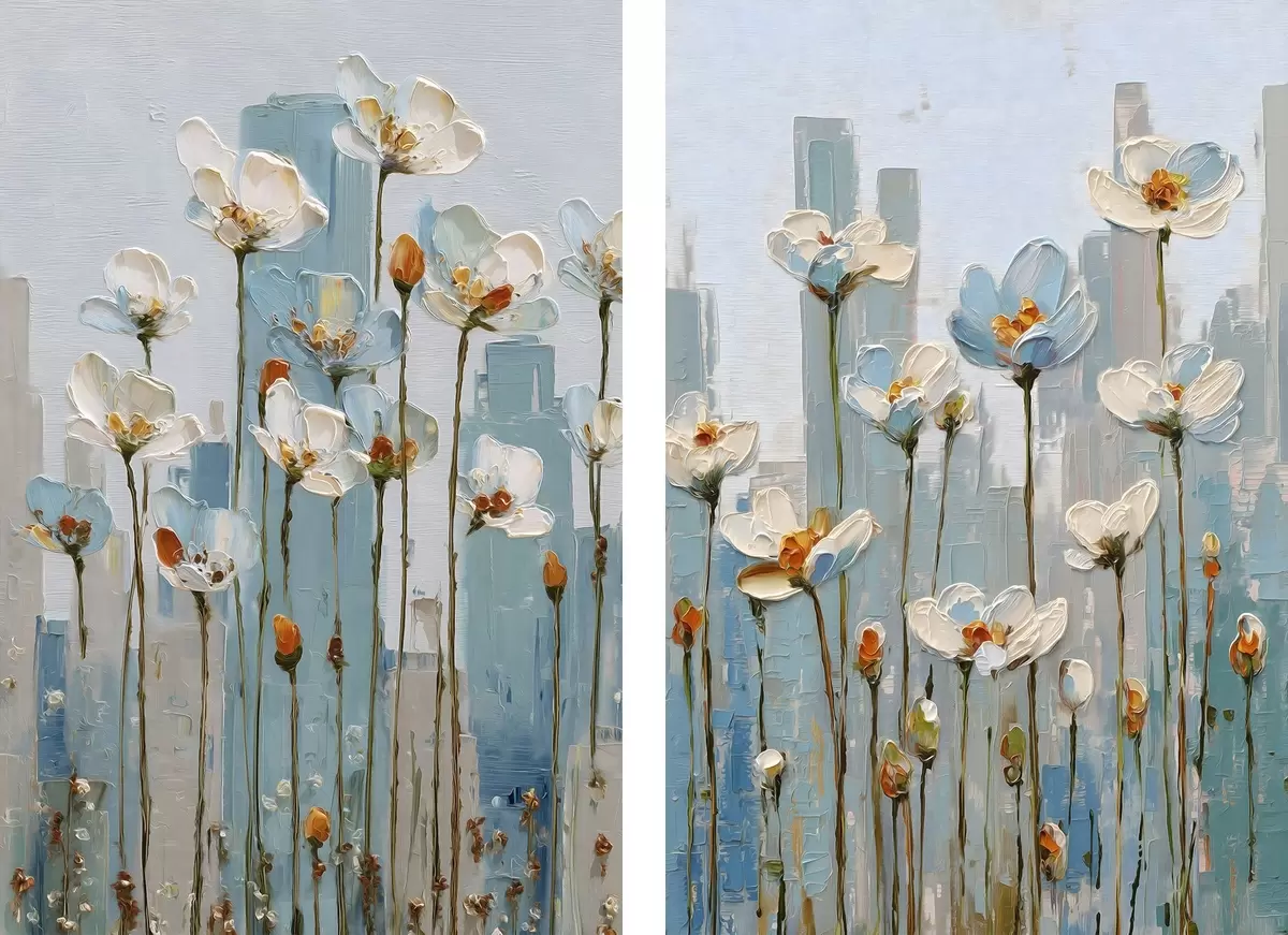 Tableau des fleurs sur fond urbain, dans le style de la peinture à l'huile Nr m30333