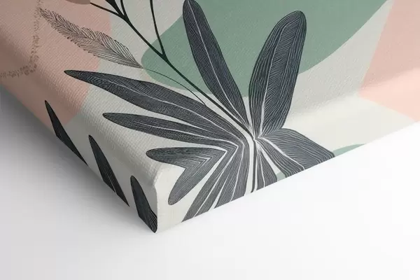 Tableau Diptyque abstrait avec des motifs végétaux et des touches de couleur, dans un style moderne Nr m30347