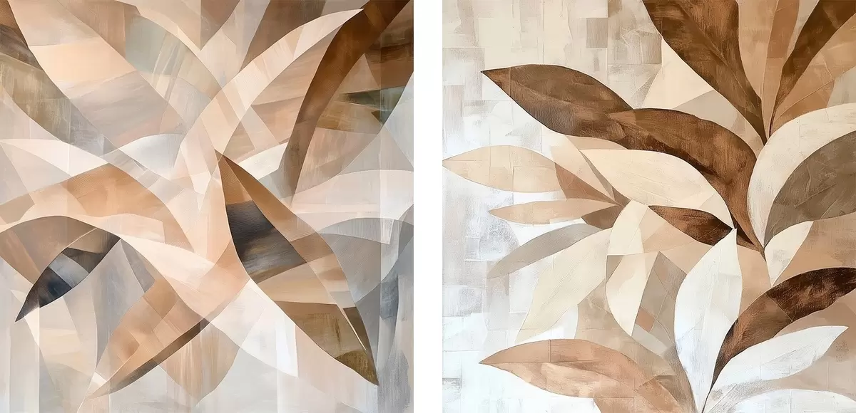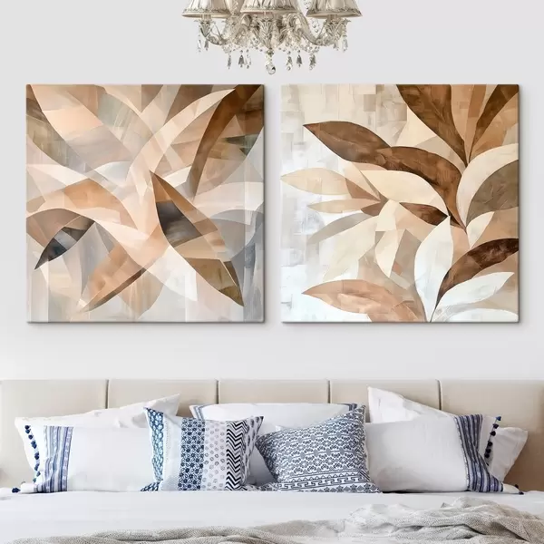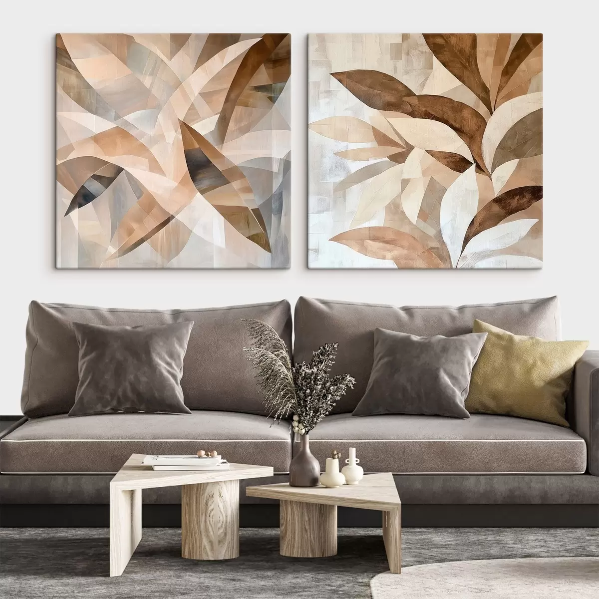 Tableau Feuillage stylisé dans des tons sable chauds, dans un style d'illustration d'intérieur contemporain m30350