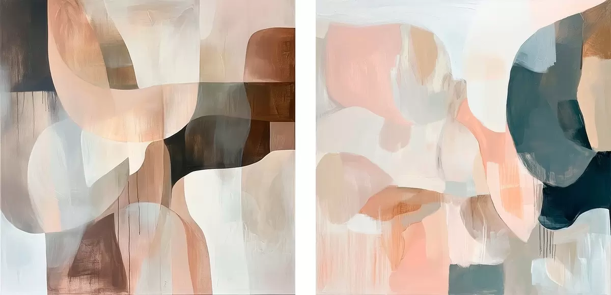 Tableau Une scène minimaliste dans des tons beige-rose et gris, dans un style artistique m30356