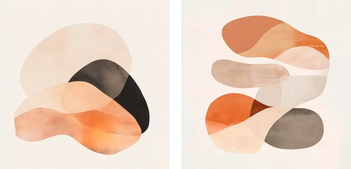 Tableau Composition aux formes douces et arrondies et aux ombres délicates, dans un style d'affiche artistique m30358