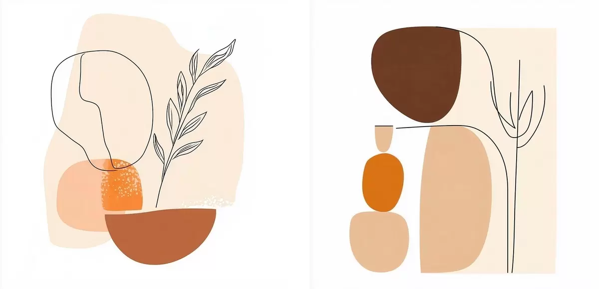 Tableau Fleurs abstraites dans une palette de tons beiges et corail chaleureux : illustration de style minimaliste m30362
