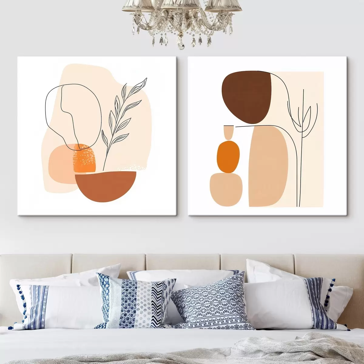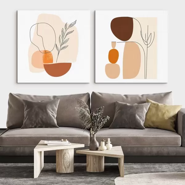 Tableau Fleurs abstraites dans une palette de tons beiges et corail chaleureux : illustration de style minimaliste Nr m30362