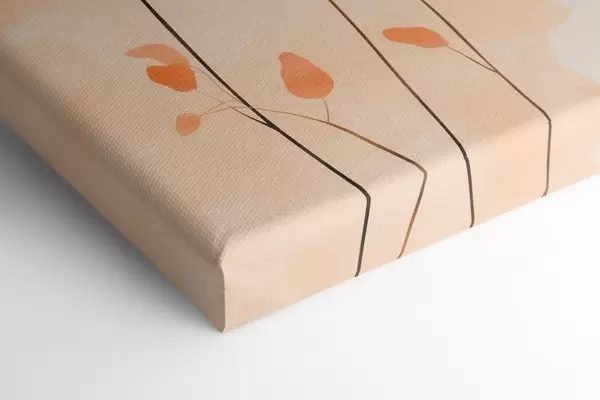 Tableau Diptyque floral aux tons chauds beige-corail, rehaussé de lignes graphiques dans un style minimaliste Nr m30363