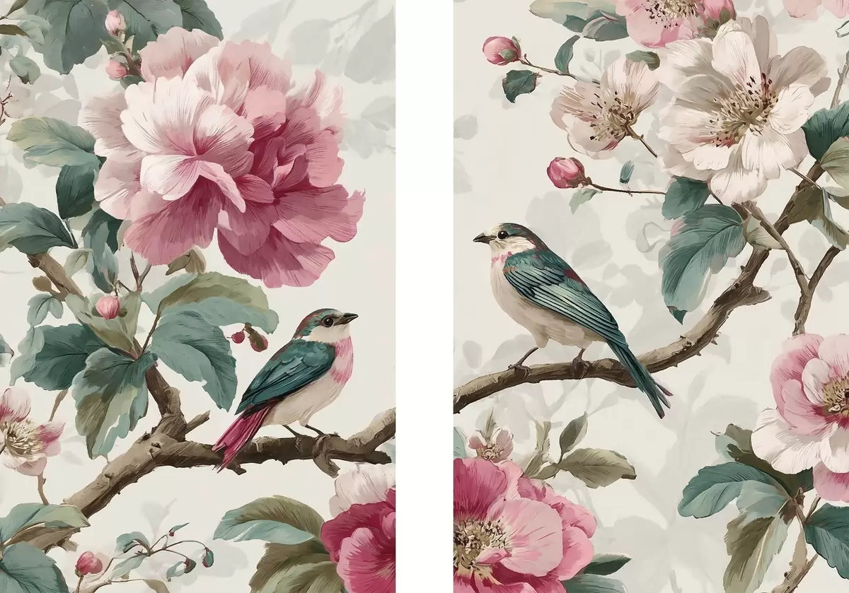 Tableau Des oiseaux et des fleurs délicates m30384