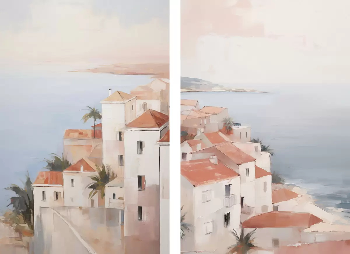 Tableau Paysage d'une ville au bord de la mer Nr m30406
