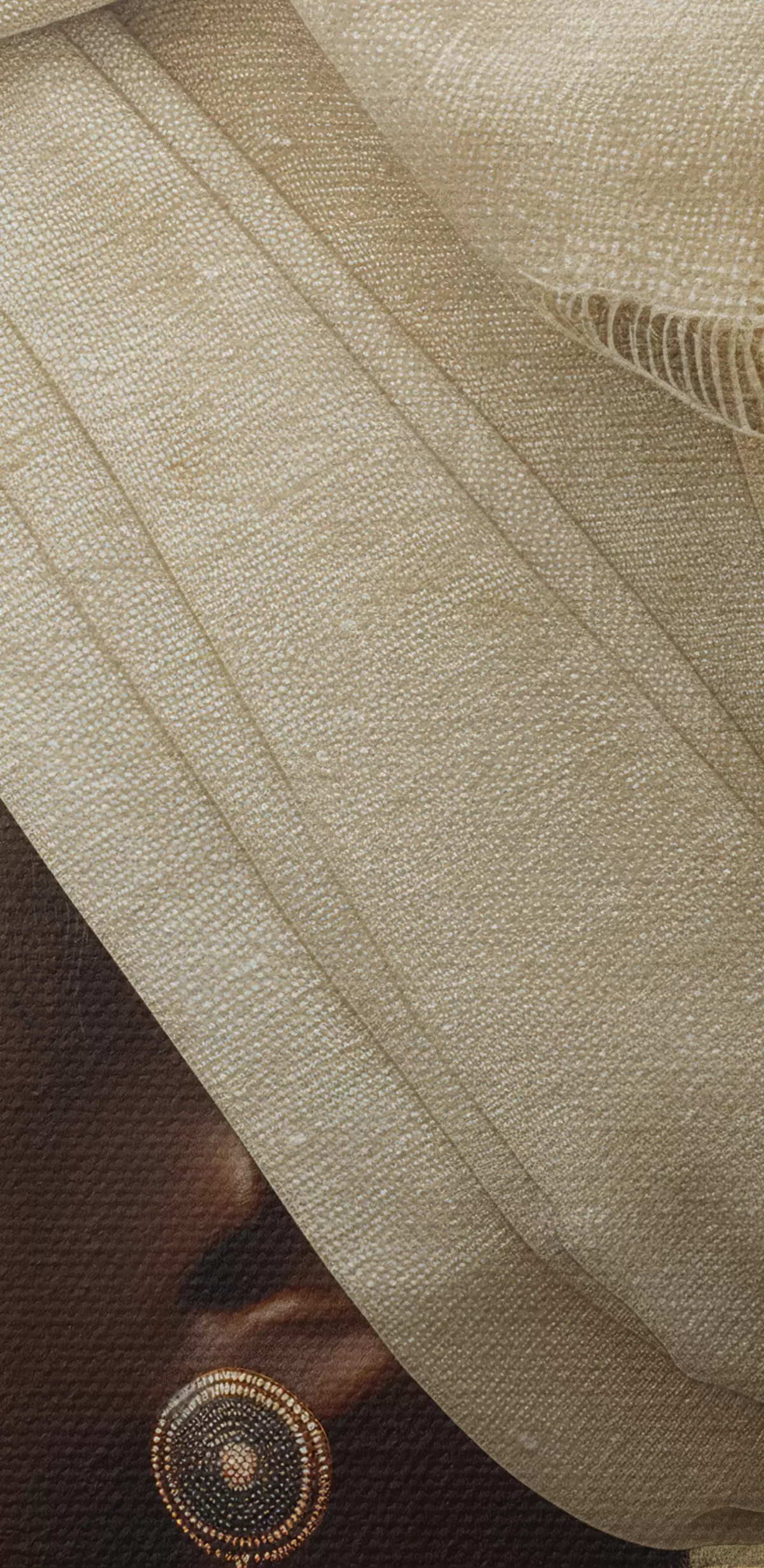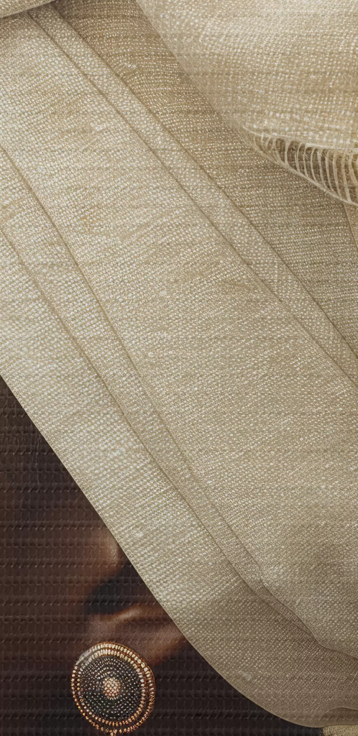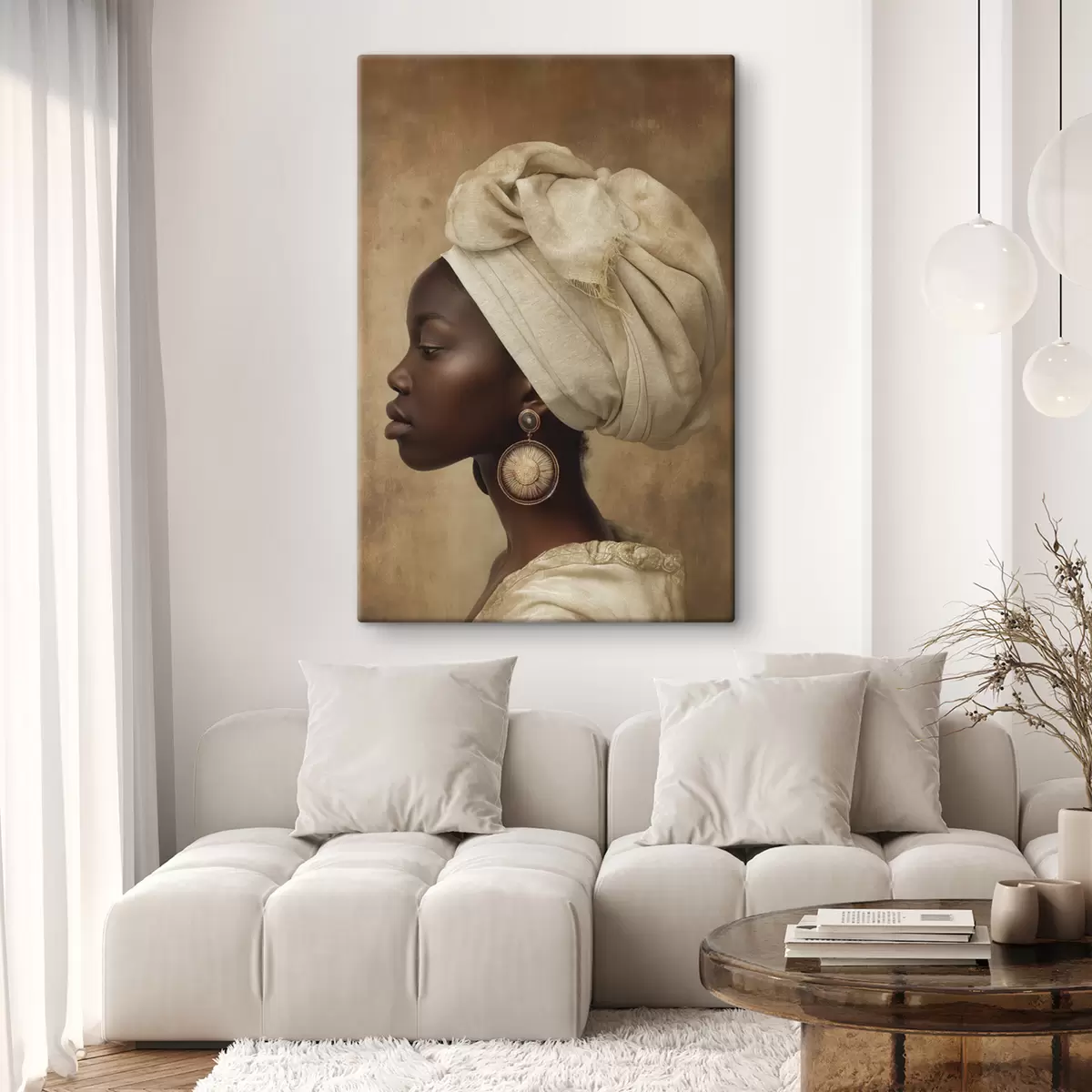 Tableau portrait beige d'une femme de style africain de profil avec de grandes boucles d'oreilles s26120
