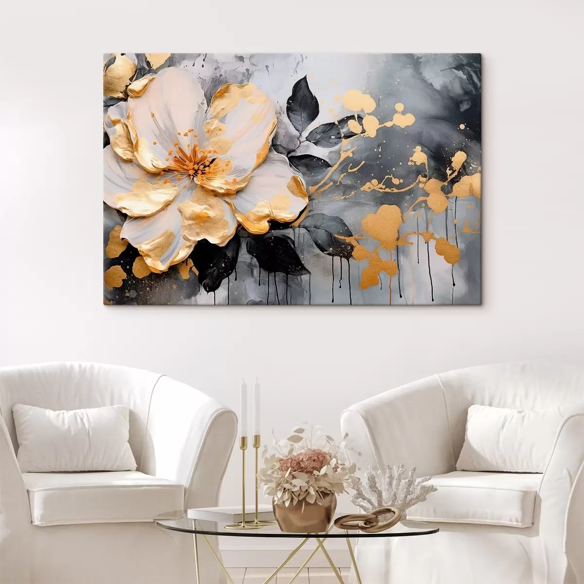 Tableau Grande fleur sur fond abstrait s35528