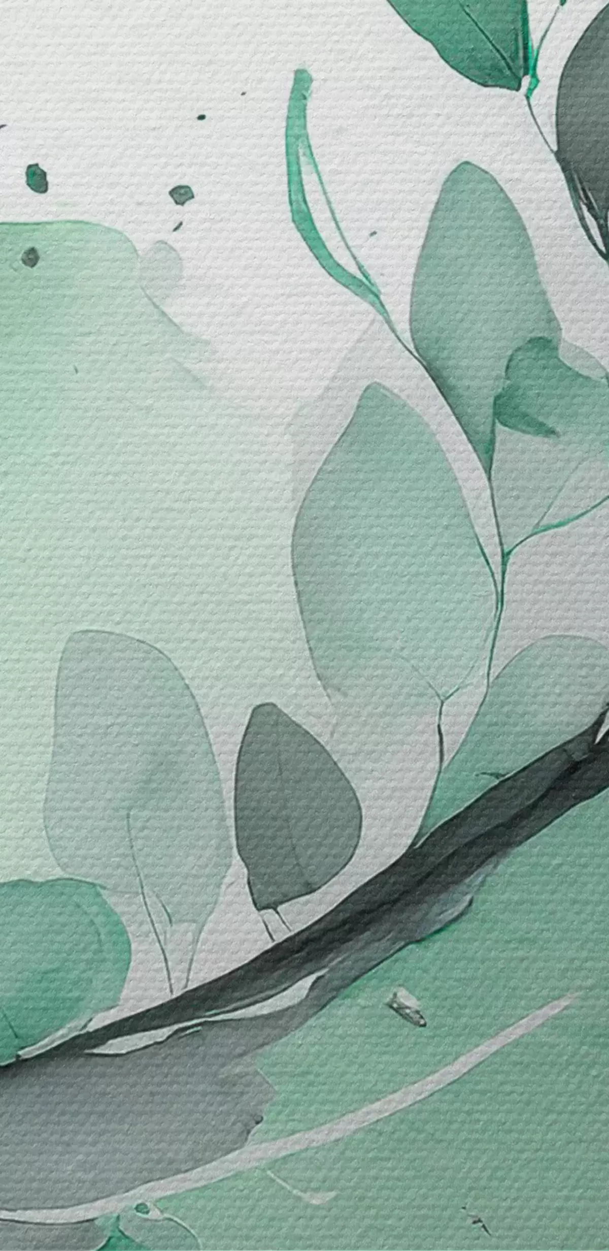 Tableau Dessin abstrait à l'aquarelle avec une plante, couleurs naturelles vertes et grises s36502