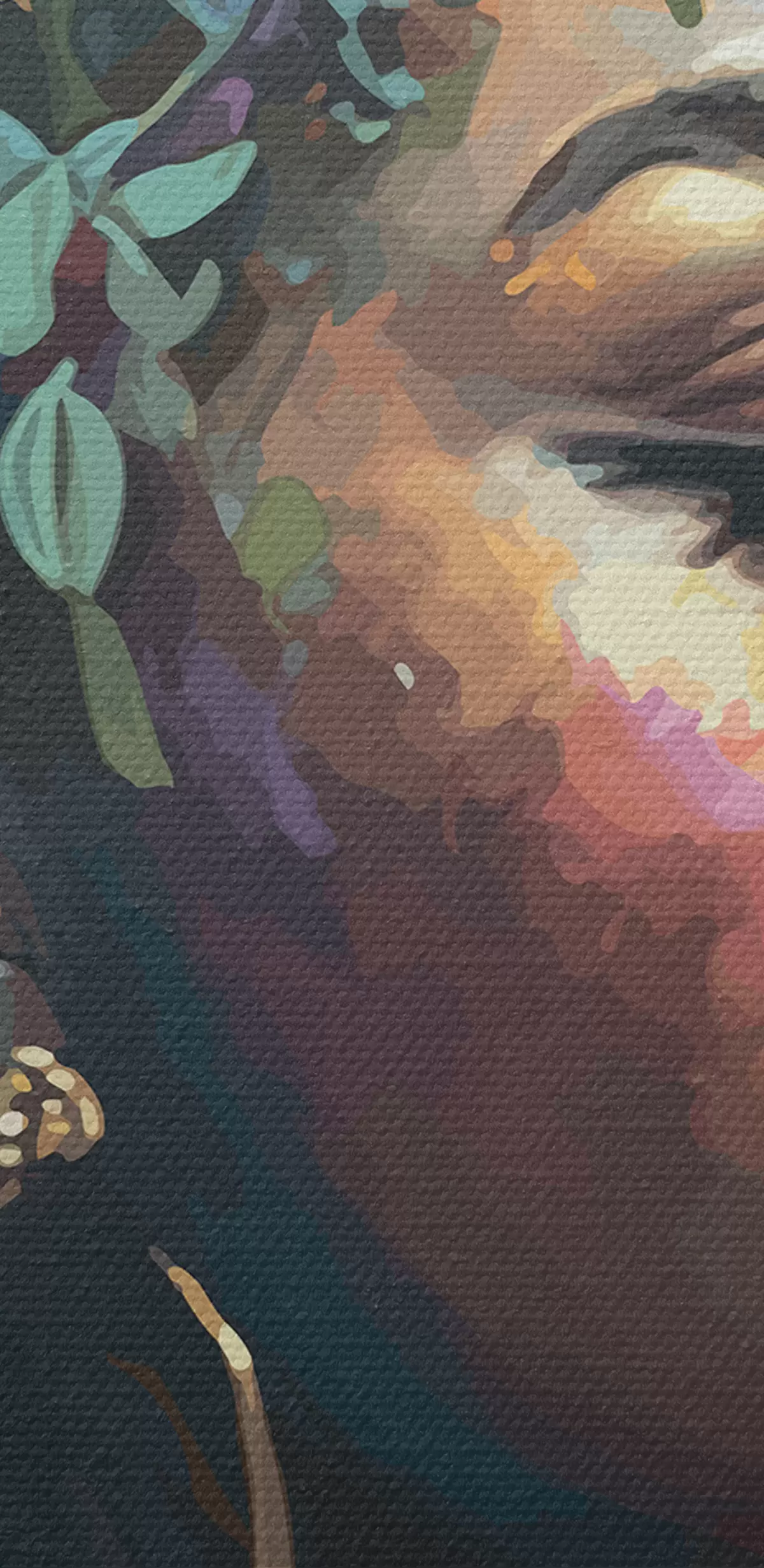 Trois types de matériaux peuvent être commandés : Economic Canvas - matériau dense et durable pour l'impression numérique, identique à la toile de peintre, surface imperméable, reproduction réaliste des détails, matériau à grain moyen. Premium Canvas - la texture ressemble à celle d'une toile de peintre (petits fils entrelacés). Reproduction douce et détaillée de l'image sur une surface mate. Eco-Premium - tissu 100 % coton de haute qualité. Grâce aux fibres naturelles de coton, le matériau est durable et résistant à l'usure. Excellente reproduction des couleurs et des détails.