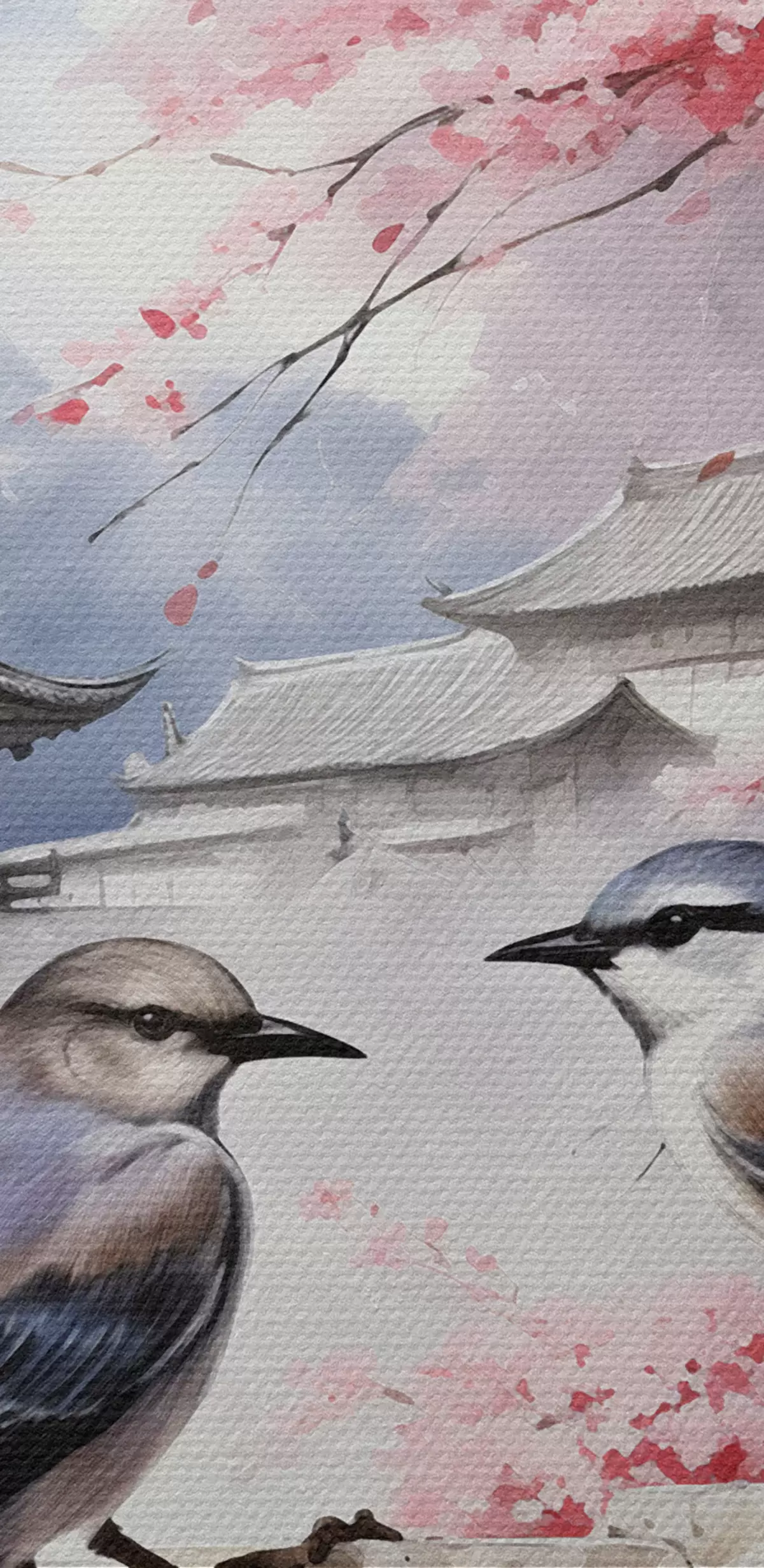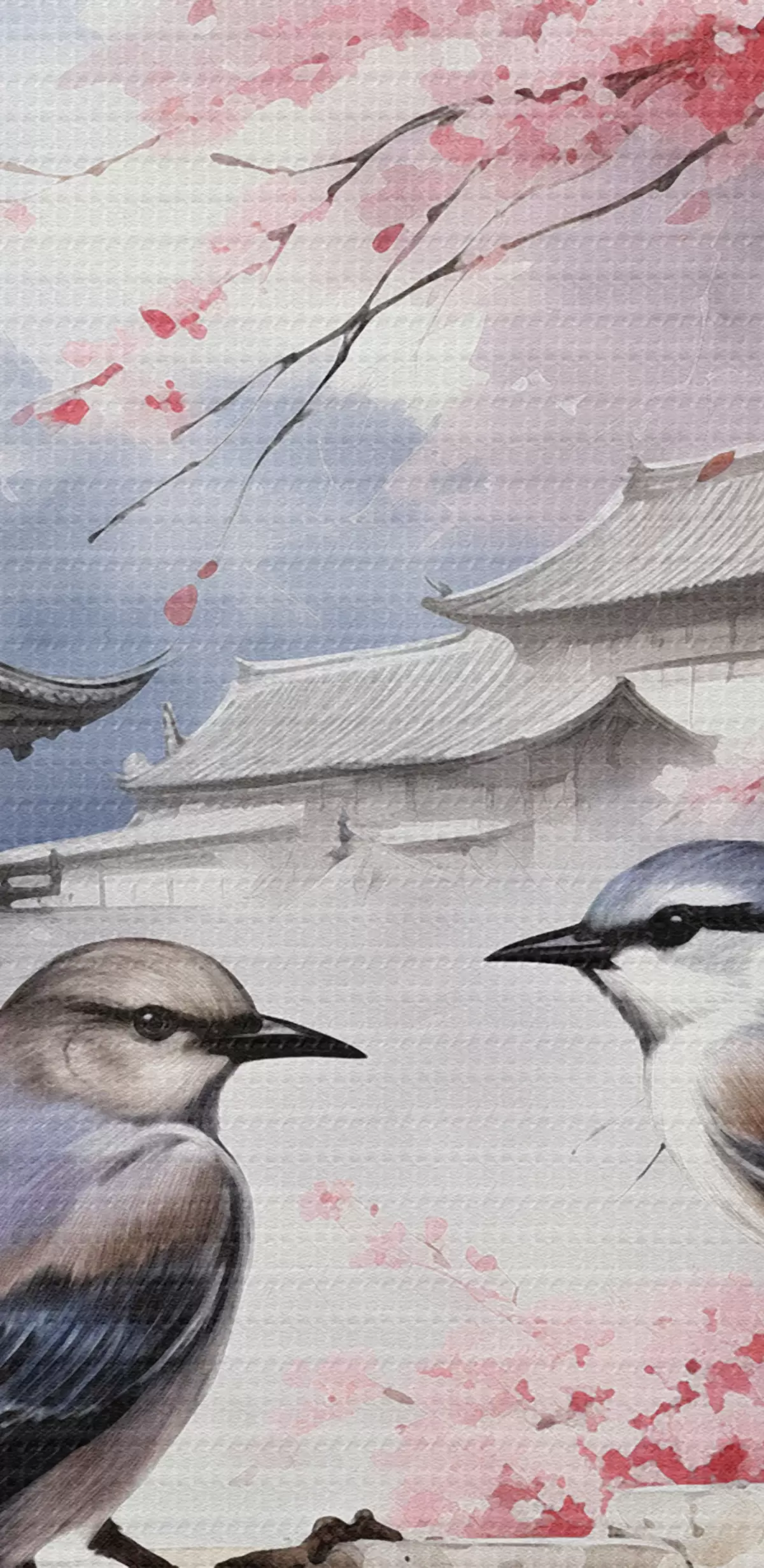 Tableau Deux oiseaux sur fond de fleurs de cerisier Nr s36815