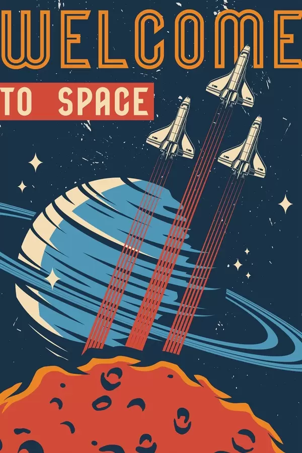 Tableau Une affiche avec des navettes spatiales volant dans le ciel s36832