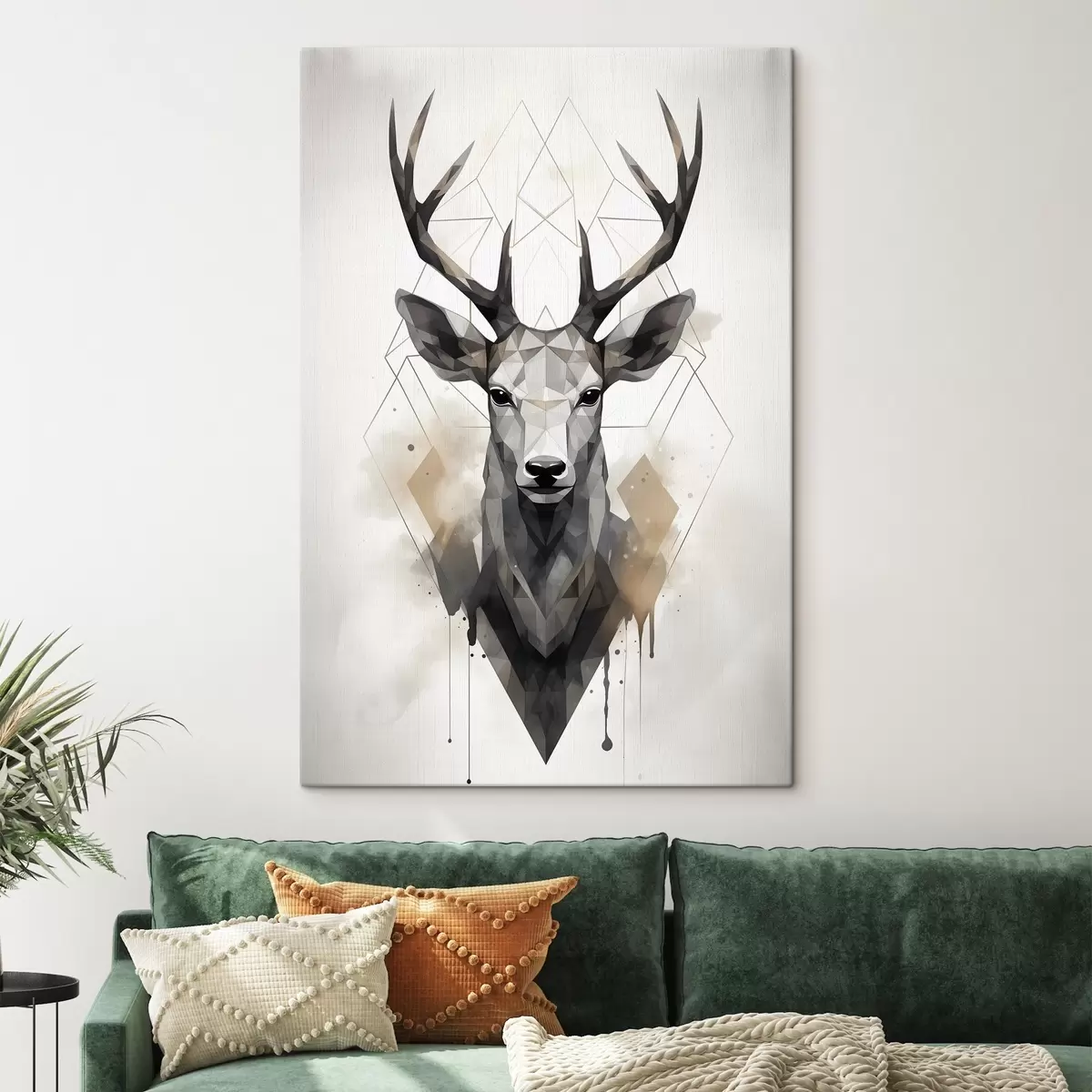 Tableau Un cerf avec des bois et un motif géométrique s37256