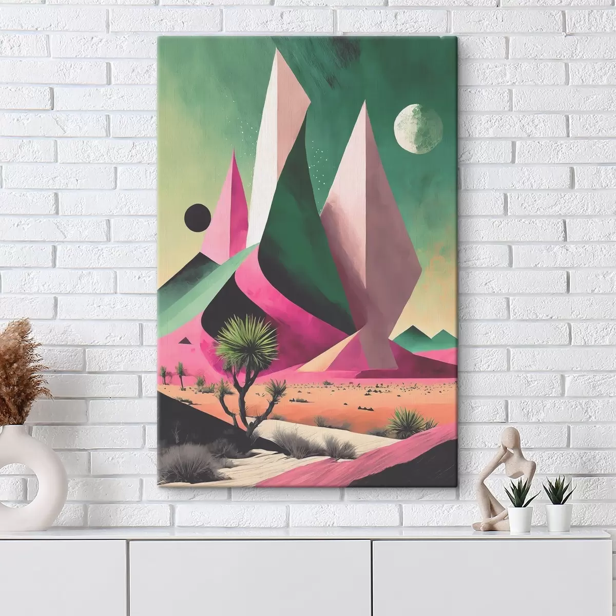 Tableau Un paysage désertique avec des arbres et des montagnes s37360