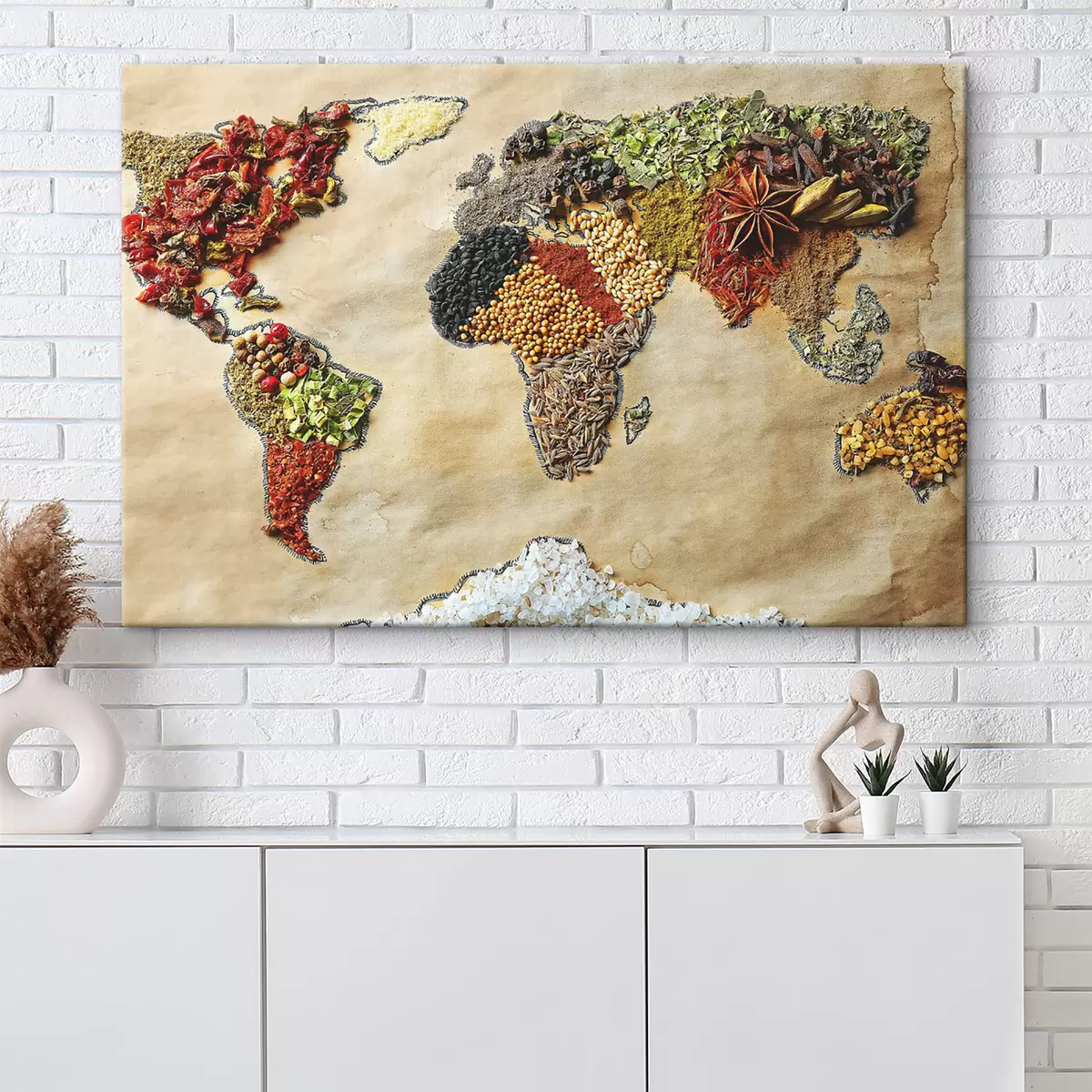 Tableau Une carte du monde composée de différentes épices Nr s37486