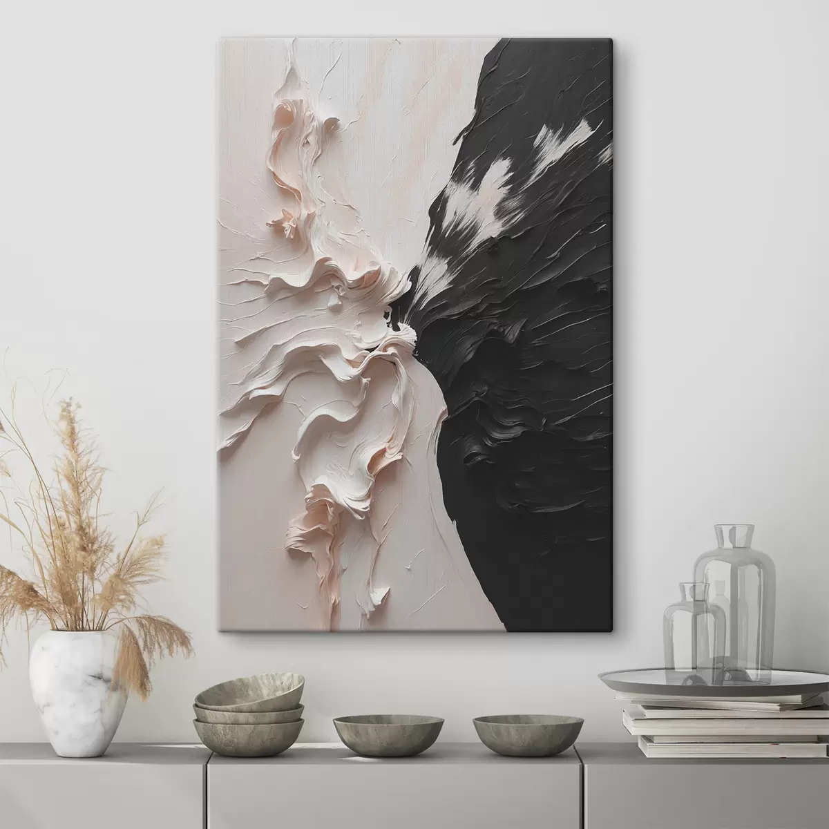 Tableau Peinture à l'huile abstraite aux couleurs blanches et noires s38300