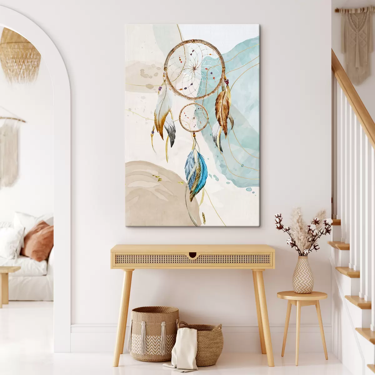 Tableau aquarelle, attrape rêve, plumes, pastel s38330