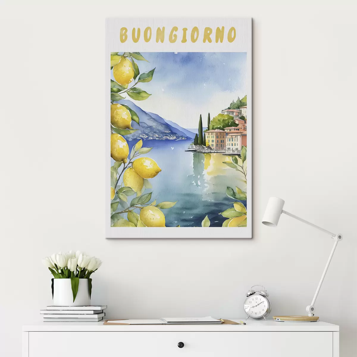 Tableau Lac italien, été, aquarelle, paysage naturel, citrons, architecture urbaine  s38394
