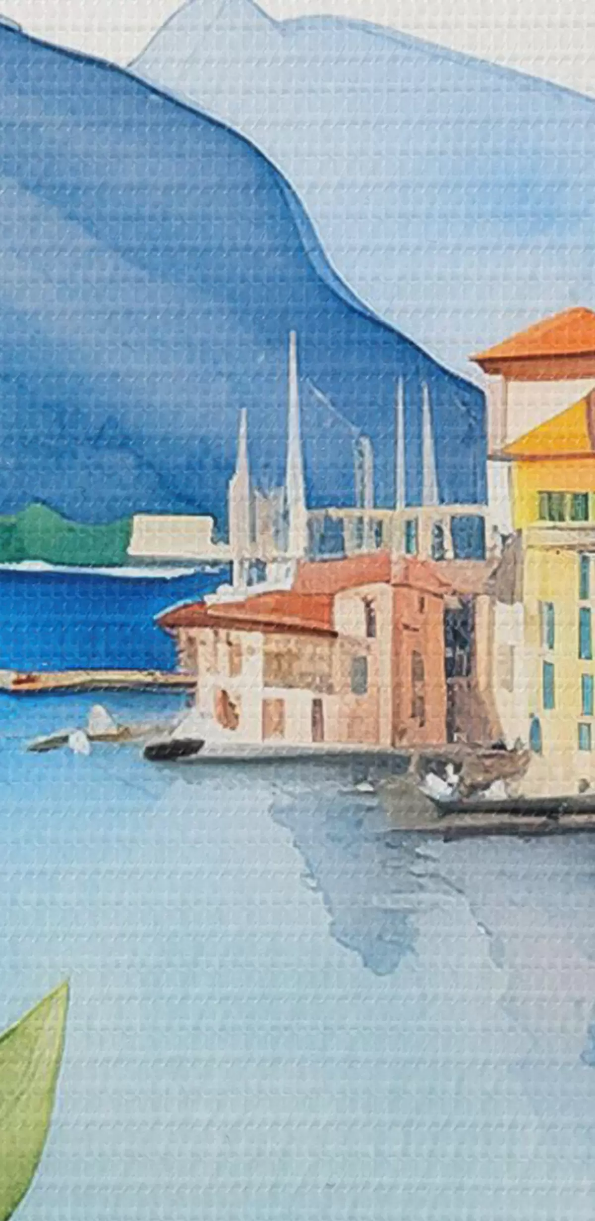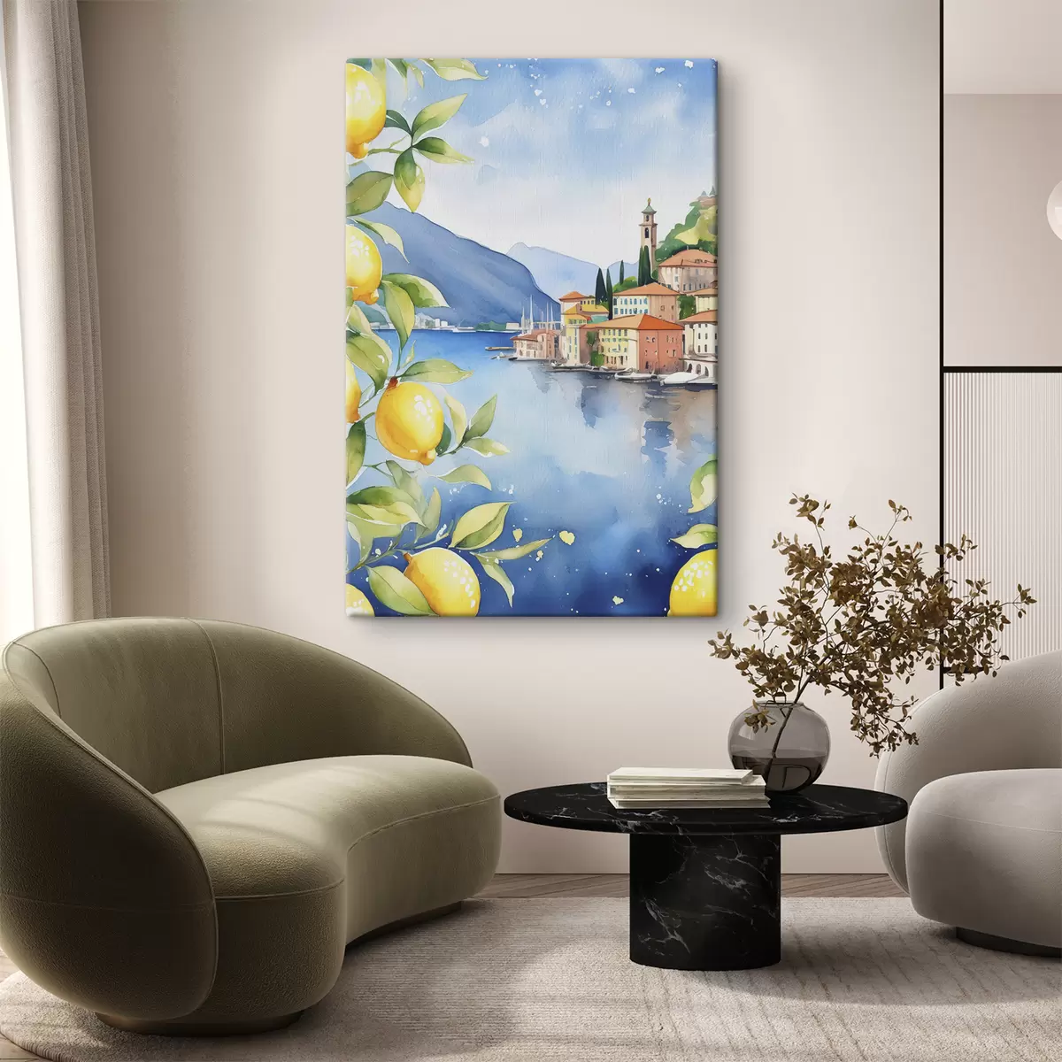 Tableau Lac italien, été, aquarelle, paysage naturel, citrons, architecture urbaine s38397