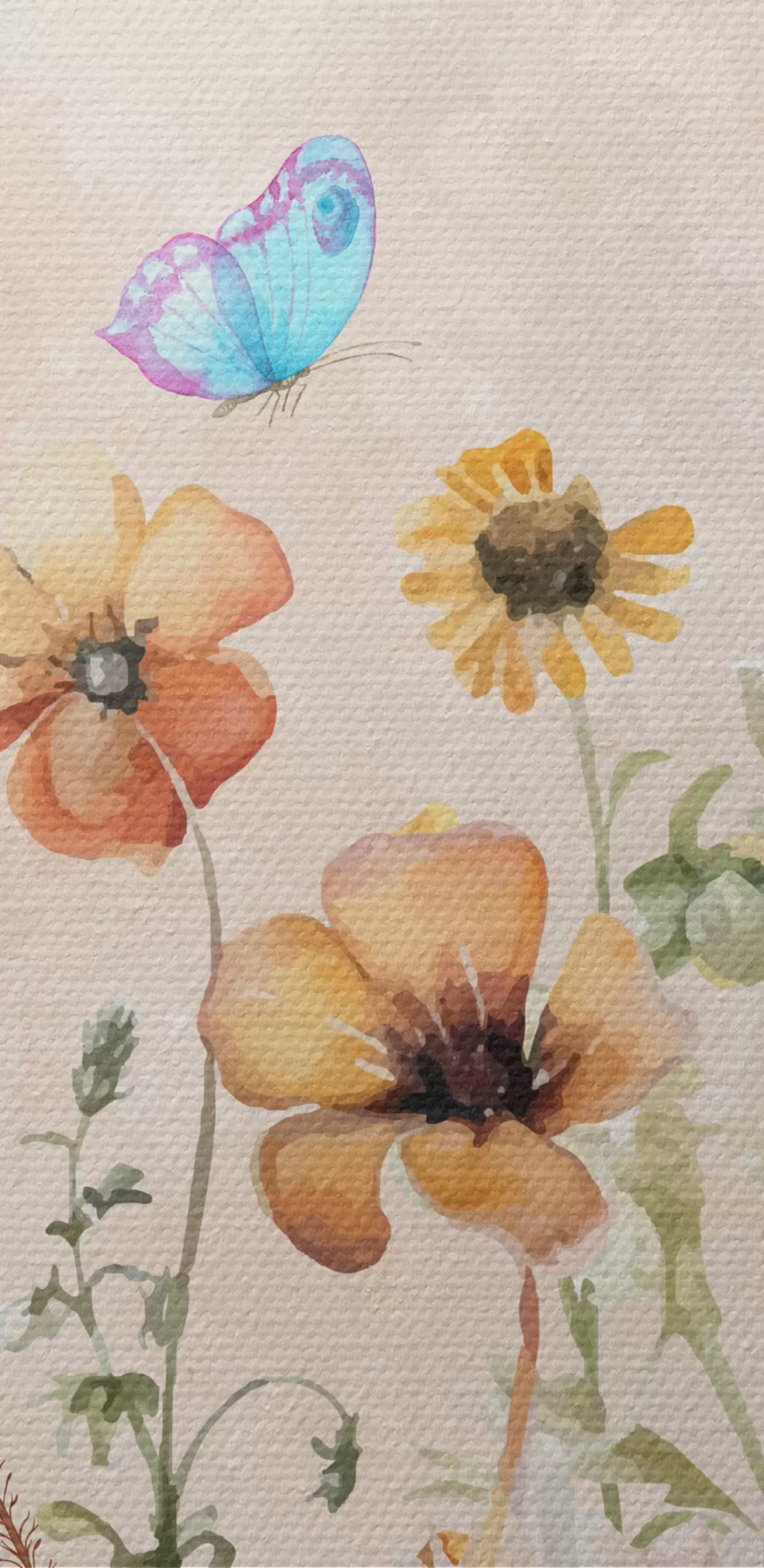 Tableau fleurs sauvages avec aquarelles, papillons lumineux, pastels Nr s38441