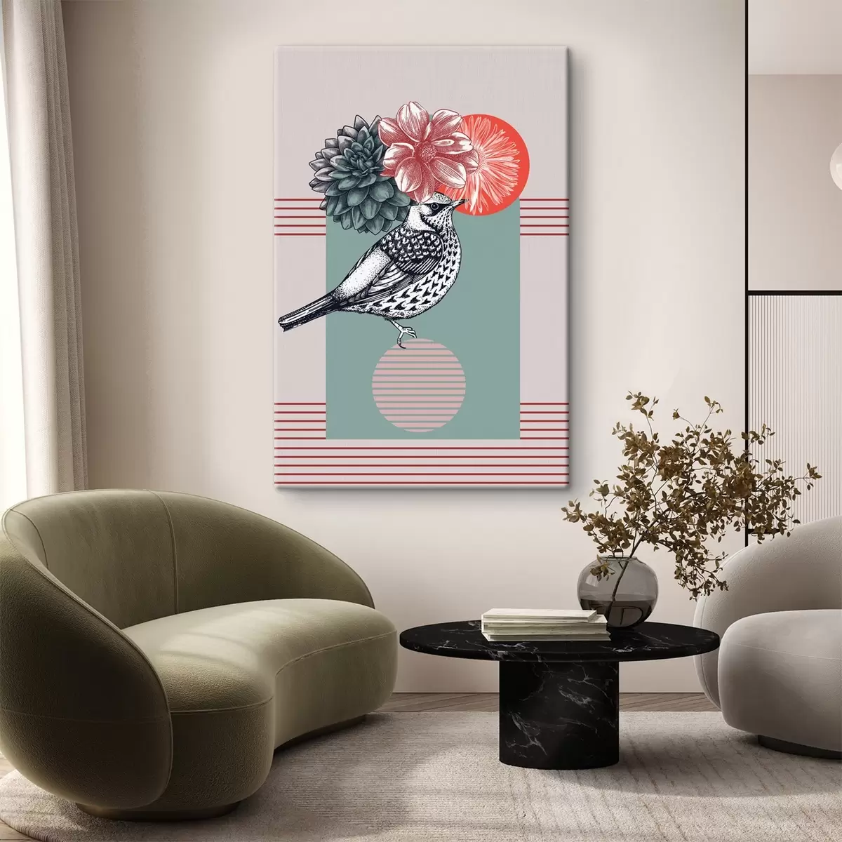 Tableau Un oiseau avec des fleurs sur la tête s38442