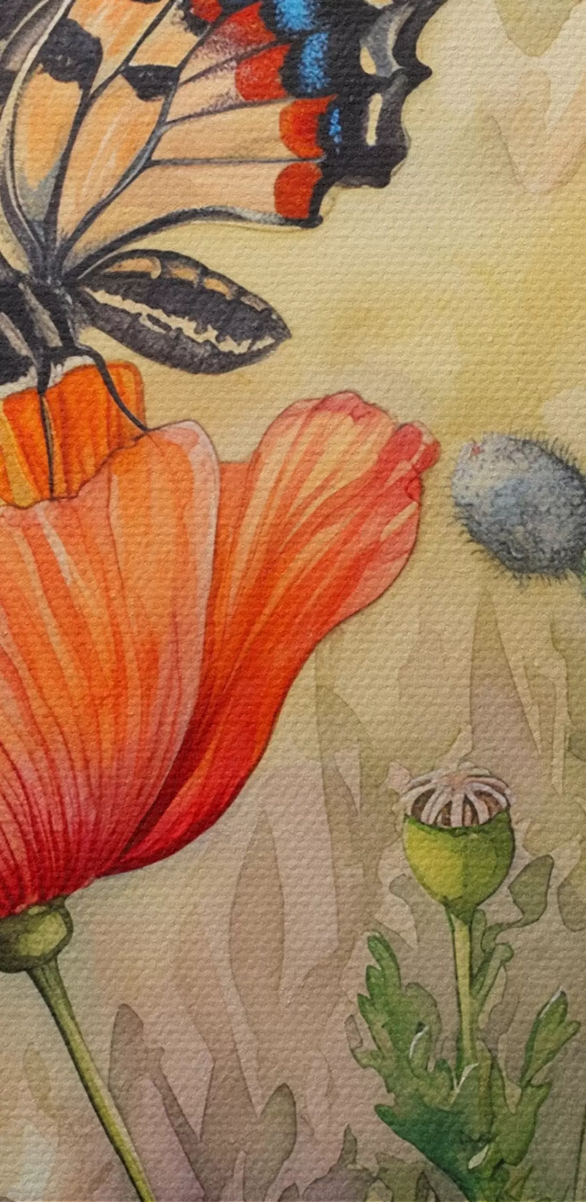Tableau Champ de coquelicots et papillon Nr s38520