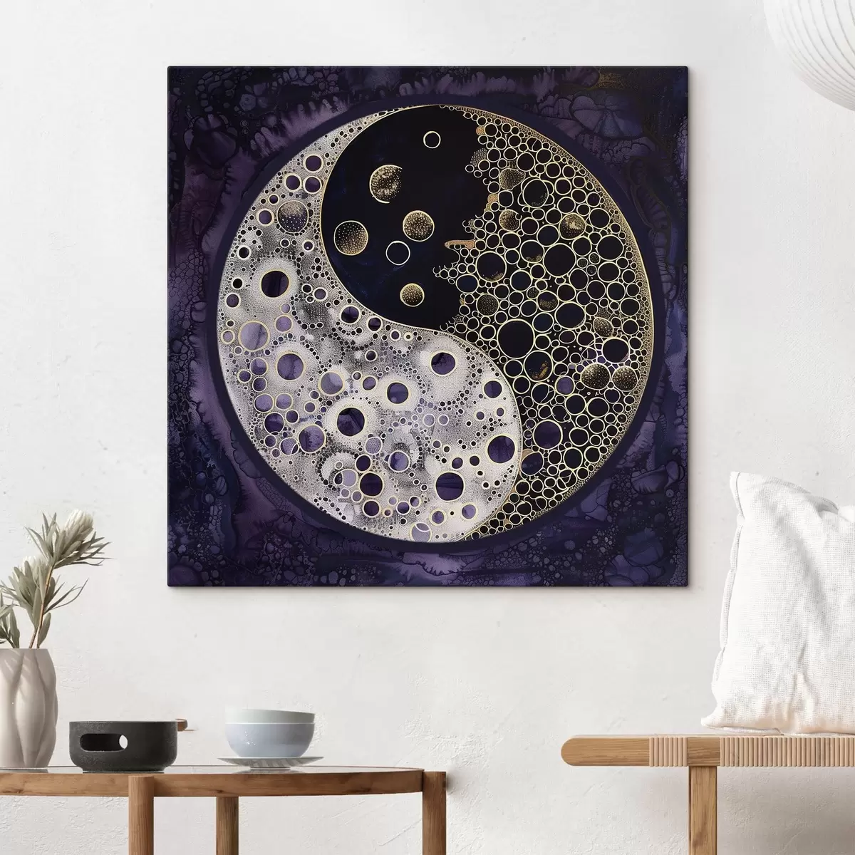 Tableau Symbole du yin et du yang sur fond violet s38535
