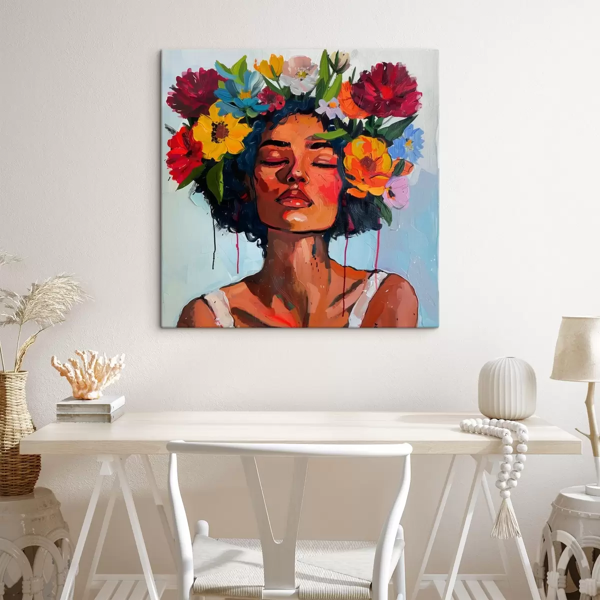 Tableau Peinture d'une femme avec des fleurs dans les cheveux s38575