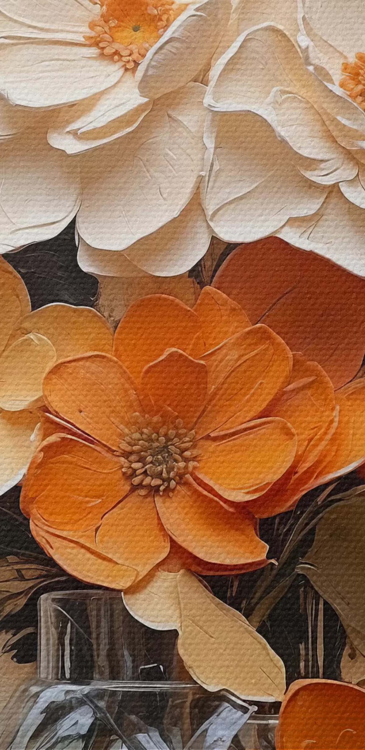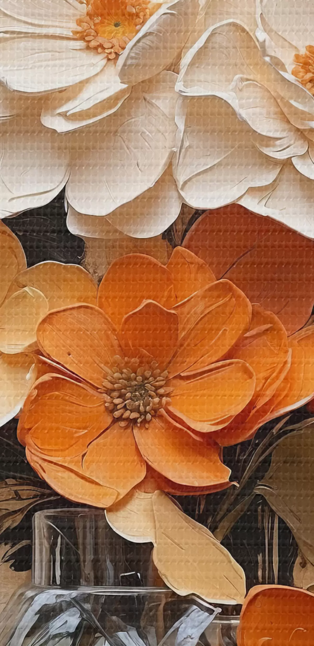 Tableau Fleurs dans un vase à l'huile sur fond beige s38673