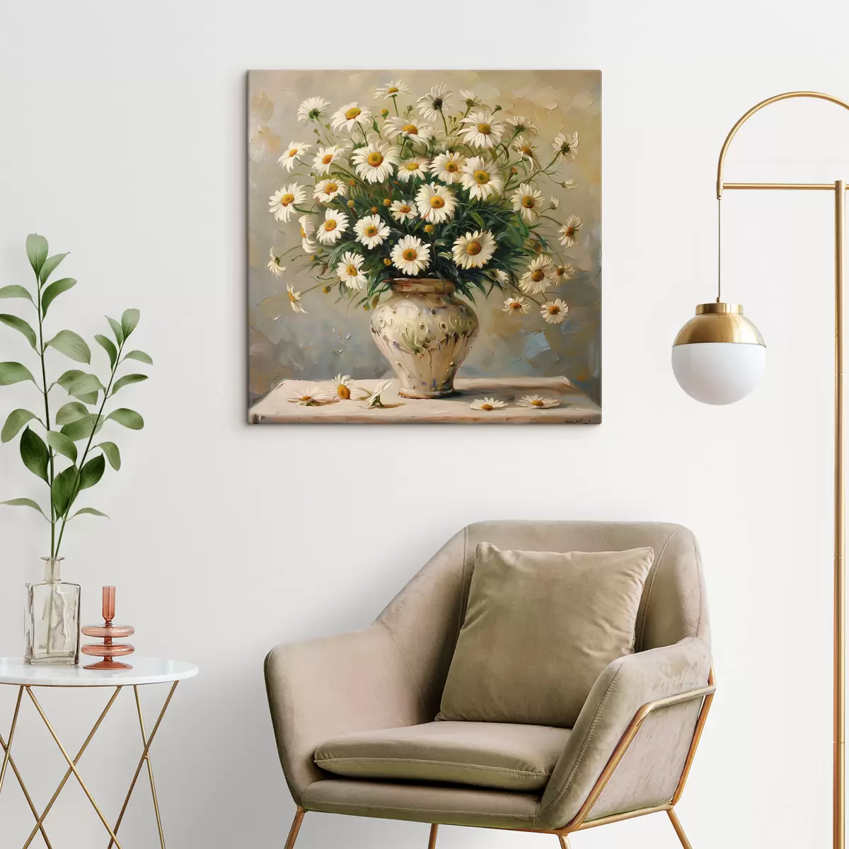 Trois types de matériaux peuvent être commandés : Economic Canvas - matériau dense et durable pour l'impression numérique, identique à la toile de peintre, surface imperméable, reproduction réaliste des détails, matériau à grain moyen. Premium Canvas - la texture ressemble à celle d'une toile de peintre (petits fils entrelacés). Reproduction douce et détaillée de l'image sur une surface mate. Eco-Premium - tissu 100 % coton de haute qualité. Grâce aux fibres naturelles de coton, le matériau est durable et résistant à l'usure. Excellente reproduction des couleurs et des détails.
